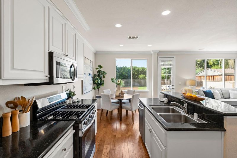 This beautiful turnkey home is located at a highly desirable community with newer homes. Built in 2001, it boasts one of the biggest lots in the community, and 2,260 square feet of living space with a popular layout including a separate living room, formal dining room, and a bright family room connected to the kitchen and breakfast area. The spacious master suite offers views of a neat patio deck and a lush green orchard in the backyard. Just steps away, a community park provides recreational facilities. Convenient access to IKEA, Home Depot, and shopping centers adds to the homes appeal.