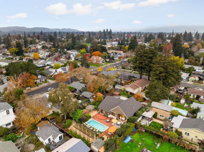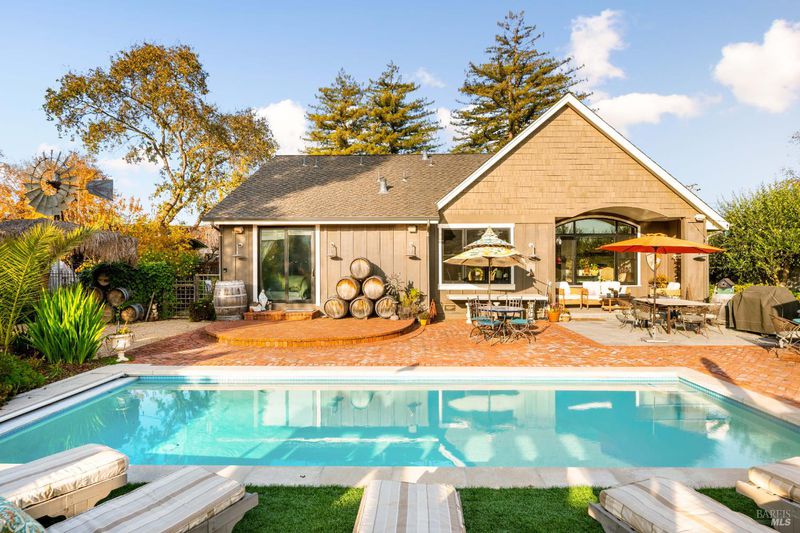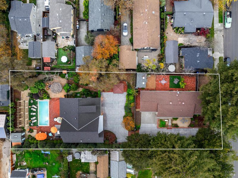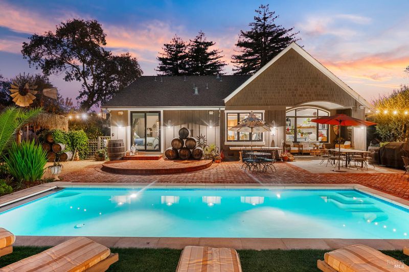 Two exceptional single-level residences on a rare 0.56-acre parcel just eight blocks from Downtown Napa. 1343 Ash Street, a 3 bedroom, 2 full bath home, renovated in 2011 with hardwood flooring added in 2015, offers comfortable single-level living with generous front and back yards and thoughtfully designed, low-maintenance landscaping ideal for relaxed Napa Valley living. 1335 Ash Street, a 3 bedroom 2.5 bath home, was built in 2014 and is a true designer showcase. This single-level home features Portuguese limestone flooring throughout and striking white oak beams in both the living room and primary bedroom. The resort-style backyard is an entertainer's dream, complete with pool, dining patio, sundeck, palapa, fire pit, expansive garden area and a charming windmill. Just beyond the primary suite, discover a gardener's paradise with an abundance of fruit trees, vegetables, herbs and 18 olive trees spread across the property. Adding a truly unique touch, the west side of the property features a Vardo - a beautifully crafted, horse-drawn cart or carriage, known for its intricate detailing, vibrant character and reputation as a tiny house on wheels offering a rare blend of artistry, history and charm. This is a rare opportunity to own a versatile, private compound offering exceptional design, outdoor living and proximity to the best of Downtown Napa.