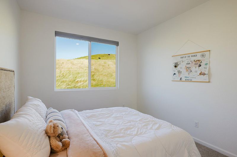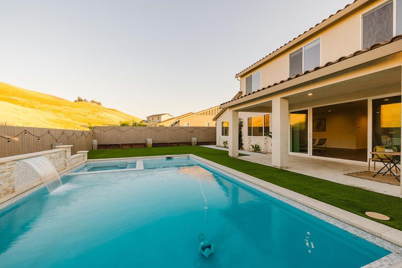 Welcome to the highly sought-after Bennett Ranch community, where peaceful country charm meets everyday convenience just minutes from shopping and dining. Backing to picturesque rolling hills, this beautifully appointed residence offers a rare sense of privacy, space, and tranquility. Step inside to a spacious foyer and light-filled open-concept floor plan designed for both comfortable living and effortless entertaining. The kitchen features quartz countertops, upgraded cabinetry to the ceiling, and seamless flow into the main living spaces. The versatile layout includes the spacious primary and an additional private en-suite on the ground floor, ideal for guests or multigenerational living. Expansive living areas enhance the homes inviting appeal. Upstairs, 3 add'l bedrooms and a generous loft feature brand-new carpeting throughout bedrooms, loft, and stairway. Step outside to your backyard retreat with breathtaking hillside views, an in-ground pool & spa with waterfall, automatic fill, and gas heater. Additional highlights include tile roof, paid solar, and a 3-car garage. Beautifully blending comfort, thoughtful design, and scenic surroundings, this exceptional Bennett Ranch home offers a rare opportunity to enjoy elevated living in one of Hollisters most desirable communities