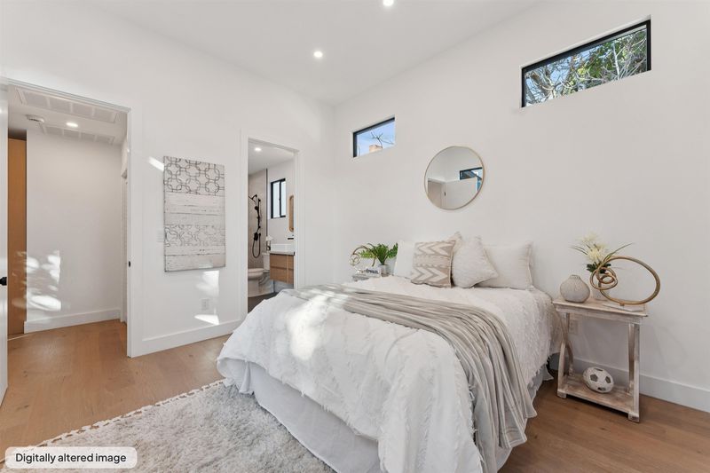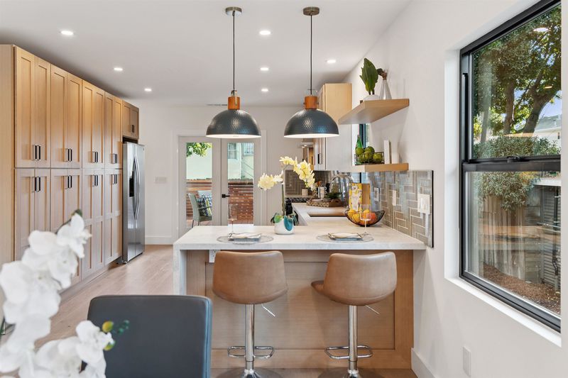 Welcome to this thoughtfully renovated three bedroom three bath residence in the heart of Oakland, where timeless architecture meets modern, effortless living. The home honors its historic roots while introducing a bright, open single level plan designed for today’s lifestyle. The front elevation is defined by a measured rhythm of Edwardian glazing, bringing depth, light, and a refined historic cadence to the street. Natural light fills the interiors, anchored by a generous great room that flows seamlessly into a modern kitchen with refined finishes, well suited for both everyday living and entertaining. Rich hardwood floors, carefully selected fixtures, and quality craftsmanship create a sense of balance, warmth, and quiet elegance throughout. The three bedrooms are comfortably scaled, including two well appointed ensuite retreats. The primary suite features high ceilings that enhance volume and light, creating a calm and elevated sense of space. Each room offers privacy, flexibility, and long term comfort. Outdoors, a fully private and thoughtfully landscaped backyard extends the living experience. A hardwood deck anchors the space and provides an ideal setting for dining, gatherings, or quiet retreat, while layered greenery offers privacy and visual interest.