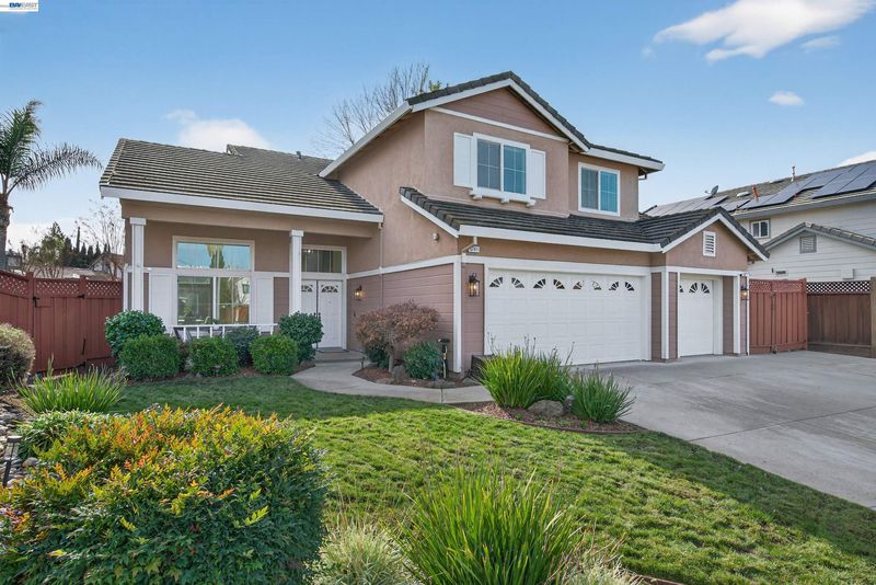 Welcome to this beautifully updated home featuring a highly desirable floor plan and a true backyard retreat! A NORTH FACING front door welcomes you into a light-filled interior with soaring two-story ceilings in the living and dining rooms, creating an airy and open atmosphere perfect for entertaining. The remodeled kitchen is a standout with QUARTZ COUNTERTOPS, gas range, subway tile backsplash, and a stylish accent wall, offering both modern design and everyday functionality. A FULL BEDROOM with walk-in closet AND BATH DOWNSTAIRS provide ideal flexibility for guests, multigenerational living, or a home office. Upstairs, retreat to the spacious primary suite complete with a private balcony, walk-in closet, and a spa-inspired bath featuring a walk-in shower, separate soaking tub, and a newer vanity with double sinks. Step outside to your backyard oasis showcasing a sparkling pool and spa with waterfalls, designed for year-round enjoyment. Entertain in style under the covered outdoor BBQ pavilion with built-in refrigerator and a cozy fire feature—perfect for relaxing evenings. Additional highlights include SIDE YARD ACCESS and a custom storage shed for added convenience. This home offers the perfect blend of comfort, style, and indoor-outdoor California living.