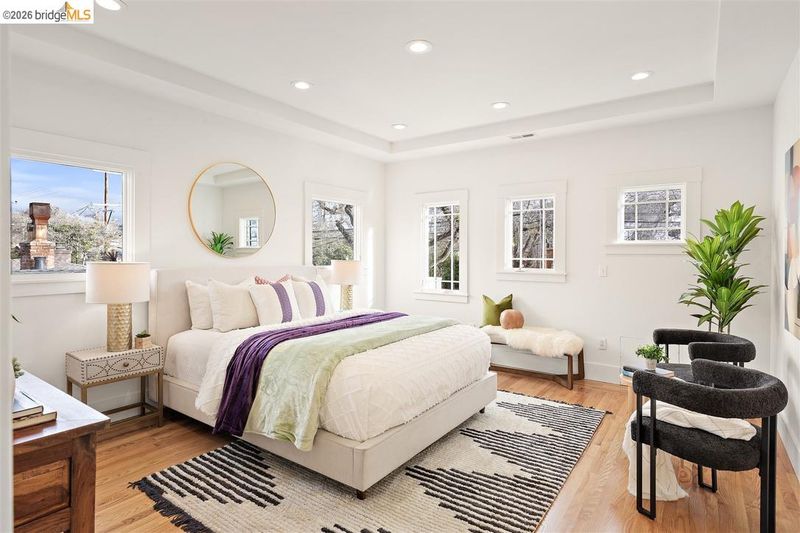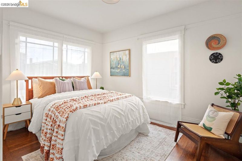 Sunny home on a quiet, tree-lined street in South Berkeley, just blocks from Berkeley Bowl West, San Pablo Park, and everyday urban conveniences. Remodeled in 2004, this classic Craftsman blends period character with modern updates, featuring hardwood floors, built-ins, and generous windows that fill the home with natural light. The chef-inspired kitchen anchors the living areas and includes Bosch, Dacor, and Viking appliances designed for everyday cooking and entertaining. The primary suite offers a spa-like bath with walk-in shower, soaking tub, and large walk-in closet. Outside, enjoy a patio, fruit trees, potting shed, and garage—ideal for gardening and weekend projects. Solar enhances efficiency, and the home is located within the Berkeley Unified School District.