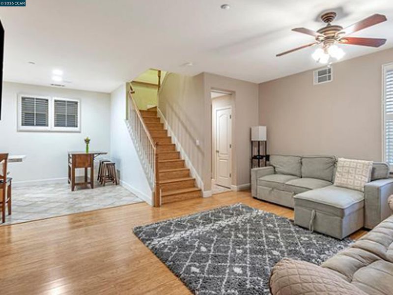 Tucked in a quiet Magnolia tree-lined lane in the desirable Hercules Bayside Community, 2036 Serra Ln boasts a covered porch with Italian tiles, wide entry, double-hung windows with plantation shutters, hardwood floors in the dining, family room and all 4 bedrooms on second floor! No carpet!Dual-zoned HVAC system. 3 of the 4 bedrooms have spacious walk-in closets , all bedrooms have ceiling fans , spacious yard with pavers, drainage , redwood gate, solar lights and lemon tree! Kitchen has stainless steel appliances, brand new 33x32 waterfall kitchen sink, newer Samsung 4-door energy efficient refrigerator (12/22), recessed lights ,breakfast nook and wide countertop. Wide garage with ample shelving and EV charger. Leased 15 solar panels with battery . Primary bath has separate tub and shower . Laundry area near the rooms has cabinets and newer Samsung dryer . Motion sensor front door light , Blink door camera . LED lights , fire sprinklers , dusk to dawn security light outside the garage , close to I-80 H-way 4, great schools , parks , transit center, Waterfront bus stop, grocery stores, restaurants, gas stations , Chase bank , coffee shops, beautiful trails with bird sanctuary and San Pablo Bay! Enjoy the stress-free living in the family- friendly