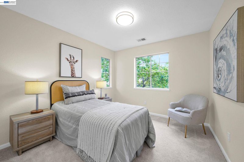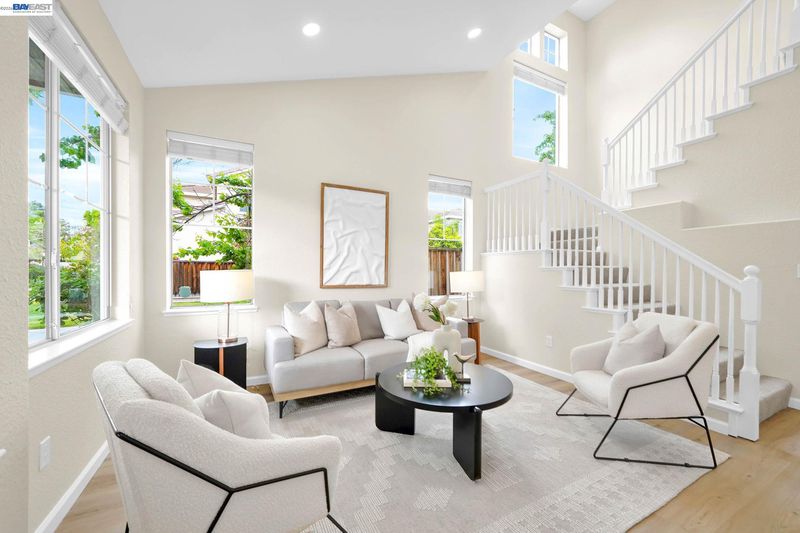 Introducing this beautiful two-story home in Fremont's desirable Ivy Glen community, featuring 4 bedrooms and 2.5 baths. The thoughtfully designed open floorplan showcases a bright formal living room with soaring vaulted ceilings and expansive picture windows that flood the space with natural light. A formal dining room flows seamlessly from the living area. The family room with a cozy fireplace is open to the kitchen. The updated kitchen offers plenty of cabinetry, a center island, updated stainless steel appliances, and a charming breakfast nook with sliding glass door access to the backyard. Retreat to the elegant master suite with vaulted ceilings, generous windows, and a walk-in closet for ample storage. The en-suite bathroom features a dual sink vanity, oversized soaking tub, and separate shower. Recent upgrades include fresh interior & exterior paint, new carpeting, and modern recessed lighting throughout. The home also offers an interior laundry room. Enjoy landscaped yards with a new front lawn and a backyard patio. Located near fine dining, shopping, and top-rated schools, with convenient access to highways 880 and 84, Silicon Valley tech campuses, Quarry Lakes, and Alameda Creek trails.