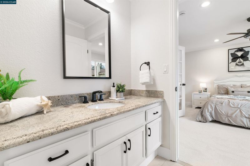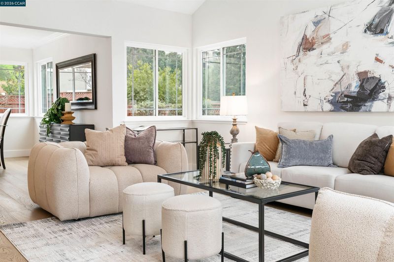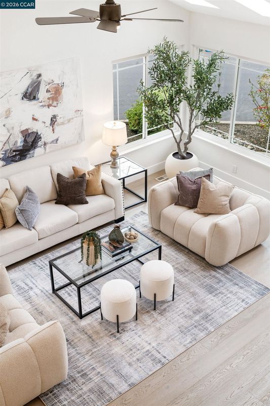 Step inside to a dramatic living room with soaring vaulted ceilings, skylights, and engineered hardwood floors. The refreshed kitchen is a chef’s dream, featuring granite counters, a tray ceiling, and high-end stainless appliances, including a new GE Profile induction cooktop and double ovens. The cozy family room with a white-washed brick fireplace flows to a trellis-covered deck with stunning sunset views. A versatile first-floor bedroom and full bath are perfect for guests or an office. Upstairs, the King-sized Primary Suite offers vaulted ceilings, a walk-in closet, and a spa-like ensuite with a frameless glass shower and matte black hardware. Two more bedrooms share a Jack-and-Jill bath. Upgrades include a Nest thermostat, new neutral carpeting, and a 2-car garage with an extra-large driveway. This "Hidden Gem" is move-in ready!