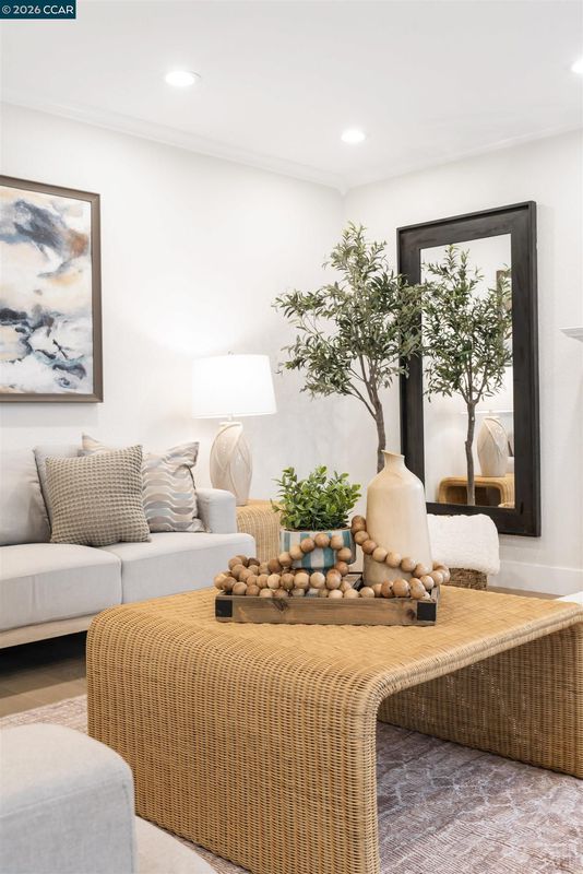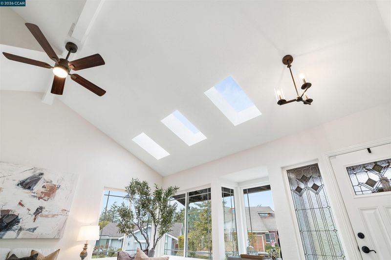 Timeless Architecture and Stunning Curb Appeal create a Grand First Impression! Enter the dramatic living room defined by soaring vaulted ceilings, skylights, & horizontal sliding dual-paned windows that flood the space w/natural light. The heart of the home is a beautifully refreshed kitchen featuring a large bay window, tray ceiling w/recessed lights, stainless appliances including a new cooktop & built-in double ovens. Enjoy mornings in the breakfast nook or host dinners in the adjacent dining area. The cozy family room, centered by a white-washed brick fireplace, flows seamlessly to the trellis-covered backyard deck—your front-row seat to stunning sunset views. A versatile 1st floor bedroom & bathroom offer the perfect setup. Upstairs, the large Primary Suite is a retreat w/vaulted ceilings, skylight, walk-in closet, & spa-like ensuite featuring a frameless glass shower & bench. Two additional bedrooms share a clever Jack-and-Jill bath. Modern touches include engineered flooring, crown molding, 5.5" baseboards & matte black hardware. 8000 sq ft lot & extra-large driveway. No detail has been spared in this "Hidden Gem"!