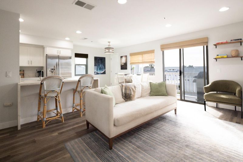 Welcome to coastal living at its finest. This rare upper-level end unit captures ocean breezes and a peek of the Pacific from its private balcony, just moments from Moonlight Beach and downtown Encinitas. Offering 2 bedrooms and 2 bathrooms across 900 square feet, the home features a light-filled, efficient layout with laminate flooring throughout. The well-appointed kitchen includes a gas cooktop, microwave, dishwasher, pantry, and dining bar, opening to a relaxed living area perfect for entertaining or unwinding after a day at the beach. Central air, forced air heating, and in-unit laundry add year-round comfort. Includes a 1 car garage! Ideally situated near downtowns restaurants, boutiques, parks, scenic walking trails, and the Coaster station, this home delivers exceptional access to both the ocean and the energy of Encinitas. Surf, dine, shop, and exploreall just steps away.