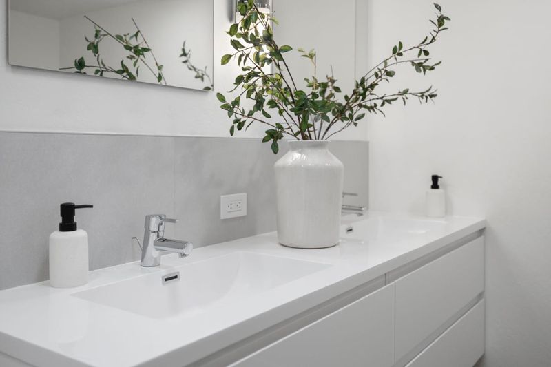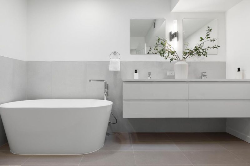- Double Sinks, Dual Flush Toilet, Half on Ground Floor, Primary - Oversized Tub, Primary - Stall Shower(s), Solid Surface, Stall Shower - 2+, Tile, Tub in Primary Bedroom, Updated Bath