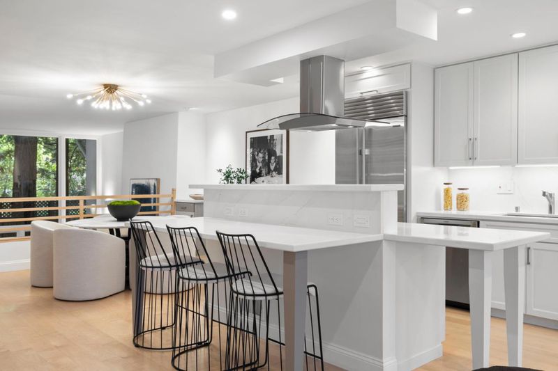 Modern sophistication meets natural serenity in this special enclave in Menlo Park. The open-concept main floor features a renovated kitchen equipped with Sub-Zero, Thermador, and Bosch appliances, flowing seamlessly into the family room and dining areas offering a wonderful flow.The dining area, features custom built-ins and a wine fridge, as well as offering a stunning and unique birds-nest perspective over the formal living room below. This dramatic, double-height living space is anchored by a floor-to-ceiling glass wall, providing a quiet and immersive view of the redwood-studded patio. The private quarters are equally refined, featuring a primary suite with a dedicated balcony and a beautifully updated ensuite bathroom with soaking tub. Two additional bedrooms share a hallway bath with a dual-sink vanity and stone counters. Recent owner upgrades include double-pane windows for sound and climate control, light hardwood floors, and custom California Closets throughout. This home includes a 220V EV-ready garage and a professional Culligan water system. Located blocks from the newly developed Springline, Santa Cruz Avenue dining, and Menlo Park Caltrain. Served by acclaimed Menlo Park schools.