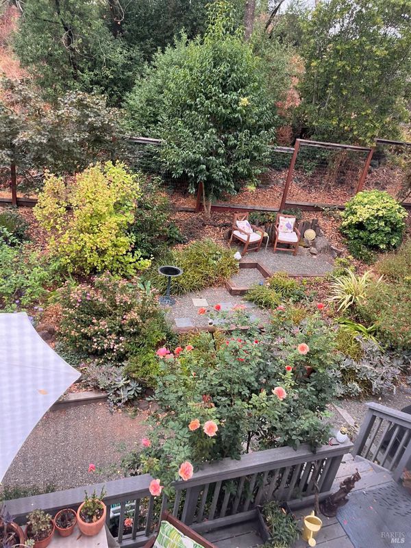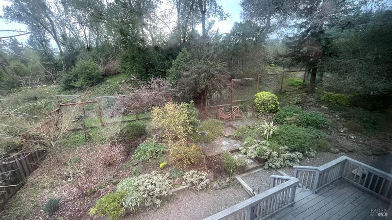 Lush & beautiful back yard with dozens of various flowers and flora which backs up to open space with no neighbors behind! Quiet and peaceful 9200sf lot with trex-style decking and hot tub! Possible boat/RV parking behind front gates. Lounge on the cozy front porch and enjoy the views of Fountaingrove hills. The primary bedroom and bathroom is downstairs as is the large living room with gas fireplace. Wash dishes gazing out over the private lush back yard. 2 bedrooms upstairs with full bathroom. Excellent natural light throughout. Grow your own herbs and vege's in the raised planters. Huge side yard to hide trash bins and shed for tools, etc. Neighborhood park with play structure & open space nearby. Hidden Valley elementary.