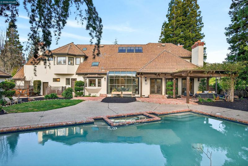 Grand Blackhawk estate. Timeless architectural detailing. Park-like .6 acres. Cul-de-sac. 4770+/-SF. 5 bds. 5.5 UPDATED bthrms inclds main-level guest ste & 385+/-SF detached guest cottage. Soaring, coffered & exposed beam ceilings. Custom millwrk. Crown, chair rail molding. Recessed ltg. French Oak & plush carpeted flrs. Dramatic split frt staircase, bk staircase. Multiple French drs to bkyd. Contemporary fixtures. 2-story foyer. Formal living rm w/frpl. Formal dining rm w/pvt patio. Butler’s pantry. Chef’s kitchen. Granite counters. Subway tile bksplsh. Custom cabinetry. Island/brkfst br. Wtr filtration systm. Viking 6-burner cktop. 3 Dacor ovens. Gaggenau steamer. Casual dining rm. Expansive fam rm w/frpl. Wet bar, frig, sink. Staircase to 400+/- bottle wine cellar. Upper-level office/library. Primary ste w/frpl, pvt balcony. Dual walk-in closets, dressing area, luxurious en suite. 2 bdrms share Jack & Jill bthrm. Bkyd sanctuary. Southern exposure. Pergola, patios, solar-heated pool, spa, lawn, lush garden bds, new lighting, Rachio irrigation. Dual HVAC. 4-car garage. Tesla charger. Laundry/mudrm. Pool bthrm. 2nd dw. Midway betwn Falls & Lakeside Clubhouses & golf courses. Near Spts Complex, Olympic pool, Fitness Ctr. Top-rated SRVUSD schls. Downtown, freeways, Mt. Diablo.