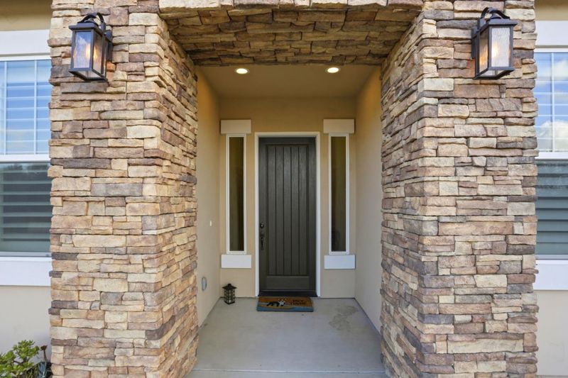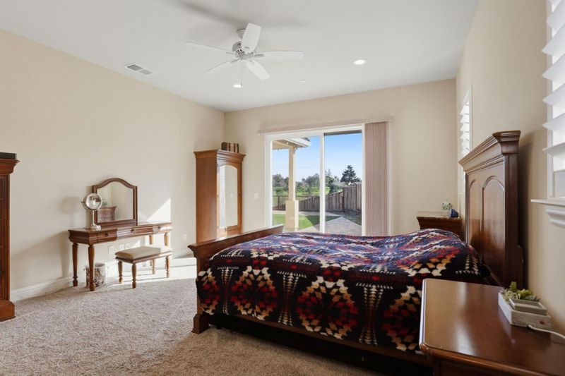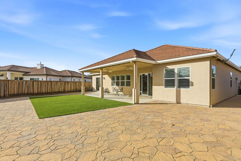 Beautiful 2,536 sq. ft. 4 bed, 3 bath home on a 10,032 sq. ft. lot backing to a peaceful drainage pond with no rear neighbors, offering privacy and open views. Wood laminate flooring throughout the main living areas. The gourmet kitchen features quartz countertops and backsplash, pot filler, 5-burner gas cooktop, dual ovens, stainless steel appliances, and an oversized island with farmhouse sink ideal for entertaining and an open floor plan lifestyle. Abundant cabinetry with under-cabinet d upper accent lighting. Formal dining room with custom-built-ins and glass display cabinets. Living room features vaulted open-beam ceilings and a stone gas fireplace. Estate shutters throughout. Spacious primary suite with backyard access and a luxurious bathroom including a stone walk-in shower with three shower heads. Low-maintenance backyard with artificial turf and stamped concrete patio, perfect for outdoor living. Smart home includes fire sprinklers, reverse osmosis and whole-house water filtration. Finished 3 car garage with ample storage and room for golf cart parking.