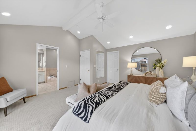 First time on market! Updated 4bd/3ba home in Cupertino! This home sits close to Memorial Park, shopping/restaurants, De Anza College, major commute routes & central to many high-tech companies. Nearby HIGHLY RATED Cupertino Schools: Monta Vista High/Sam Lawson Middle/Abraham Lincoln & Faria Elementary! This 1-story home offers tasteful charm w/ open flowing space. Features include all-new interior/exterior paint, beautiful hardwood floors & all-new carpets, updated kitchen, oversize primary suite, skylights throughout, gorgeous HEATED swimming pool/spa! Gourmet Kitchen features large, attached dining room, plentiful modern cabinetry & granite counters, commercial-grade cooktop & exhaust+double ovens. Living room w/ cozy wood-burning fireplace, attached dining area & views of the resort-like backyard with awning. 4 bedrooms, 1 w/hardwood floor and the others w/ all-new carpet. The primary suite features high ceilings, large walk-in closet, attached en-suite bath w/ dual sinks & separate soaking tub & stall shower, sliding door to backyard. Lovely, landscaped backyard that comes w/ a beautiful, heated swimming pool/spa perfect for enjoying the outside. There are at least 4 types of fruit trees as well, including lime, lemon, orange & apple. 2-car garage w/ tons of extra storage.