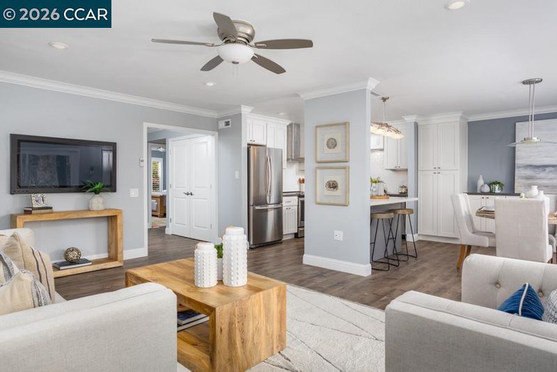 LOCATION, LOCATION, LOCATION!! Close proximity to front gate, Gateway clubhouse, gym and golf course. Complete remodel in 2018 by Precision Building & Design offers a contemporary style blended with strong traditional elements. You will immediately fall in love with this flawless unit. Upgrades include wide Planked Vinyl flooring along with soft Plush Carpet in bedrooms. Kitchen includes: S/S Appliances, Quartz Countertops with an extended Breakfast Bar, Shaker Cabinets that extend into Dining area creating extra storage, kitchen pantry with electric outlet, baseboard's, crown molding; smooth ceilings & dual pane windows, Custom Walk-in Shower with Tile & Glass surrounds, stacked W/D, raised Kitchen & Bathroom Ceilings, Gas Water Heater & HVAC. You will also enjoy spending quality time with your family & loved ones on the deck just outside the living room absorbing the timeless beauty of the vibrant Rossmoor hillside & landscape. The good life is waiting for you here at Rossmoor - offered at $449,000 this Co-op is an exceptional value.