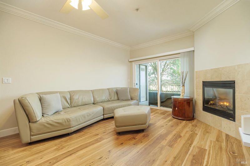 Beautifully remodeled with quality finishes and move-in-ready. This is a highly desirable and rare ground floor unit with pastoral views in the well maintained Capri Condominiums. Be prepared to be impressed. This gound floor unit provides easy access. Its kitchen features natural light and included washer and dryer. The spacious Dining Room and Living Rooms have a limestone faced gas fireplace and high quality hardwood floors. The balcony with a private storage closet is a perfect spot to gaze upon the rolling hills and pastures. Great clubhouse with gym. Low HOA dues of $528 covers external building, roof, grounds, water and garbage. Ideal location to enjoy the nearby trails, highway access, Civic Center, Farmers Market, McInnis Park/Golf/ Club Restaurant & more! A jewel in a secret paradise! Covered parking conveniently across from unit entrance #110. Second deeded space is #90 and there is additional guest parking.