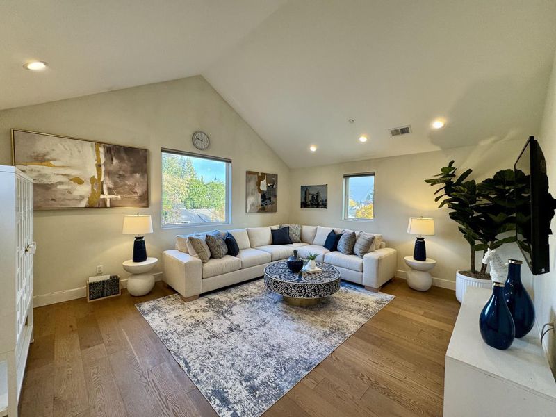 Welcome to 16 Hillview, a modern retreat in one of the most desirable neighborhoods of Redwood City. Built in 2019, this light-filled 4-bedroom, 3.5-bathroom home blends contemporary comfort with timeless style, offering an ideal layout for elevated living and effortless entertaining. Step inside this East-facing home to discover a bright, open floor plan with warm hardwood floors, expansive windows, and seamless indoor and outdoor flow. The thoughtfully designed kitchen features sleek countertops, stainless steel appliances, and abundant storage, perfect for home chefs and gatherings of any size. The adjoining living and dining areas create an inviting space framed by natural light. Thoughtfully designed for flexibility, the home offers a bedroom suite on each level, ideal for multi-generational living, visiting guests, or those who work from home. Upstairs, a generous bonus loft creates space for a media room, play area, office, or fitness zone. Outside, the private backyard is an oasis for relaxation and entertaining, complete with a gazebo and colorful landscaping that create a serene, sheltered setting. Just minutes from vibrant downtown Redwood City, neighborhood parks, top schools, Caltrain, and major commute routes, this home combines convenience with modern luxury.