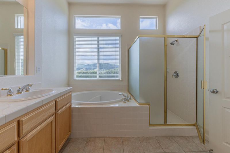 - Double Sinks, Oversized Tub, Shower and Tub, Stall Shower, Tub in Primary Bedroom, Tubs - 2+