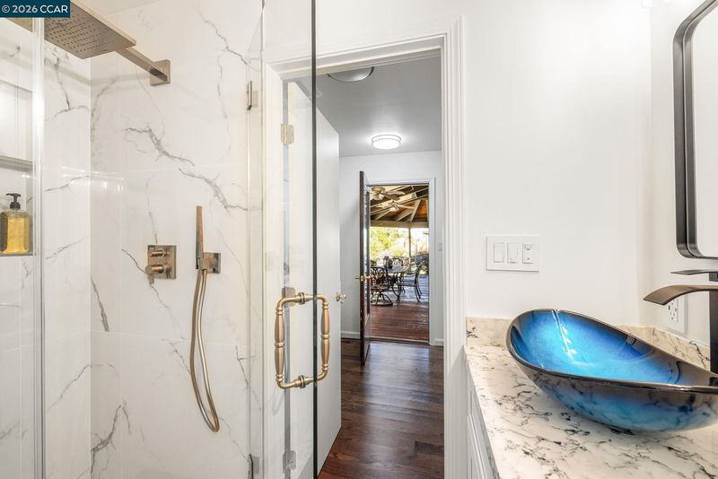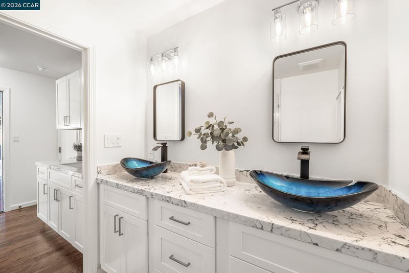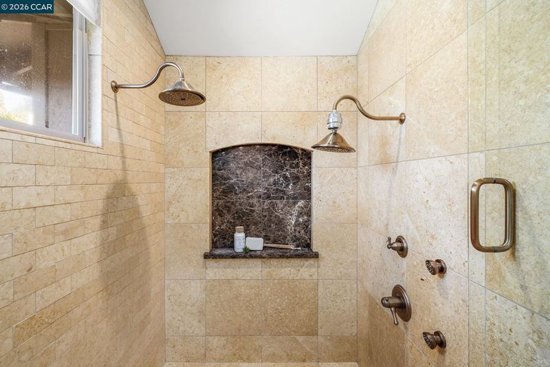 - Shower Over Tub, Solid Surface, Split Bath, Stall Shower, Updated Baths, Double Vanity, Stone, Window
