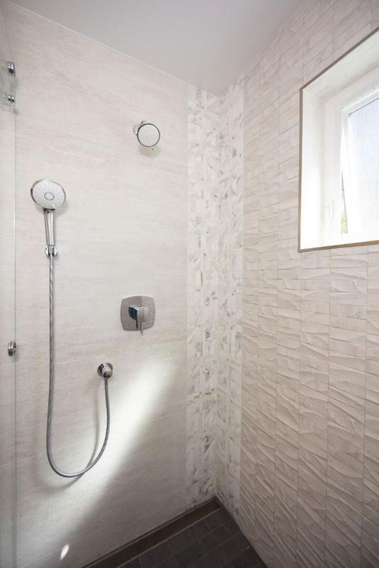 Double Sinks, Full on Ground Floor, Primary - Stall Shower(s), Stall Shower - 2+, Stone, Tile, Updated Bath