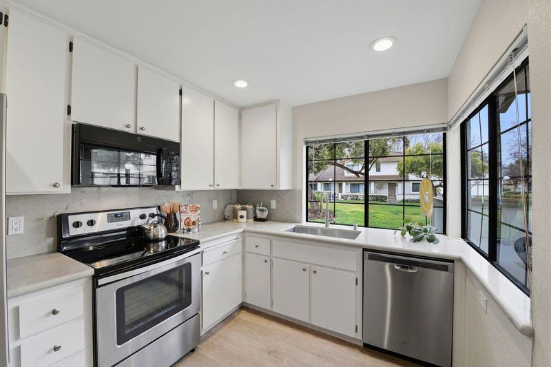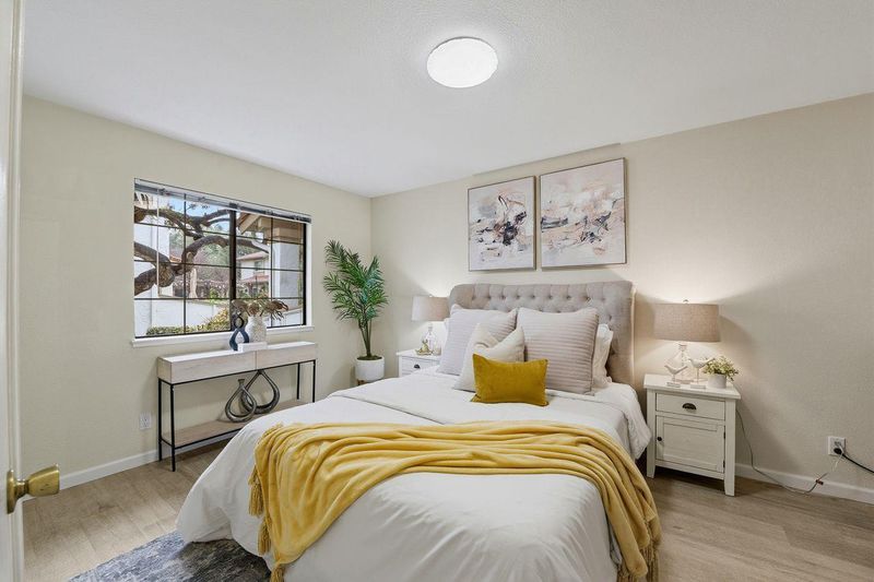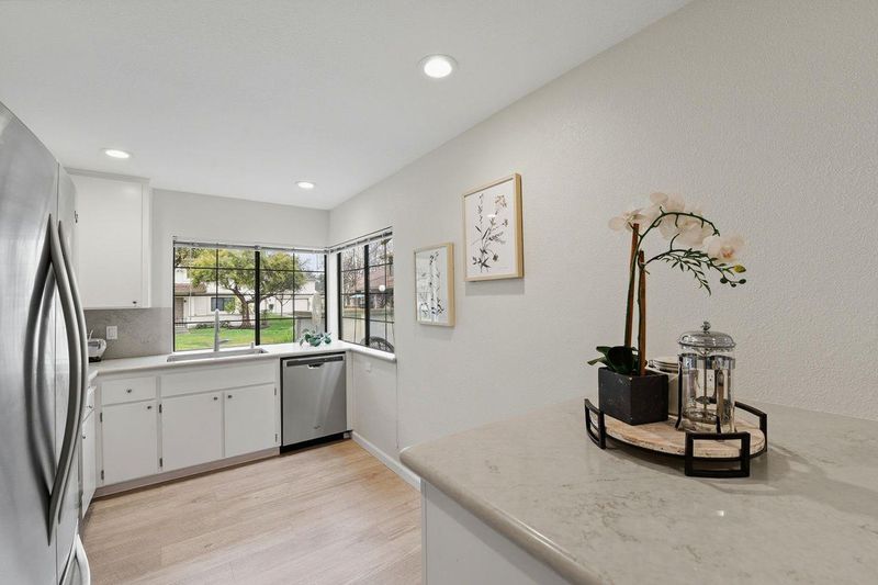 Be Prepared to be impressed with this Meticulously maintained home. This rare & highly desirable single-story end unit with no steps is located in a peaceful and quiet neighborhood. Tastefully updated and move in ready. featuring a beautiful kitchen with quartz countertops, large stainless-steel sink, recessed lighting and stylish laminate flooring throughout. The spacious eat-in dining area flows into the sun filled family room overlooking a private patio designed with pavers for an easy living lifestyle, perfect for relaxing. The primary bedroom offers a walk-in closet, while the second bedroom is similarly updated making it ideal for guests or a home office. The updated hall bathroom includes stylish quartz countertop, updated shower and modern fixtures. What you will love about this home is the attached two-car garage with shelving for extra storage. Central Heating and A/C. Interior utility room with washer and dryer. HOA Covers Roof, water, basic cable exterior maintenance and landscaping, Just a short stroll away is the 287-acre Martial Cottle Park, offering trails, open green space, and picnic areas. Easy access to 87/85, light rail, bus stops, shopping & dining, Blending modern living with a prime location an opportunity that's not to be missed.