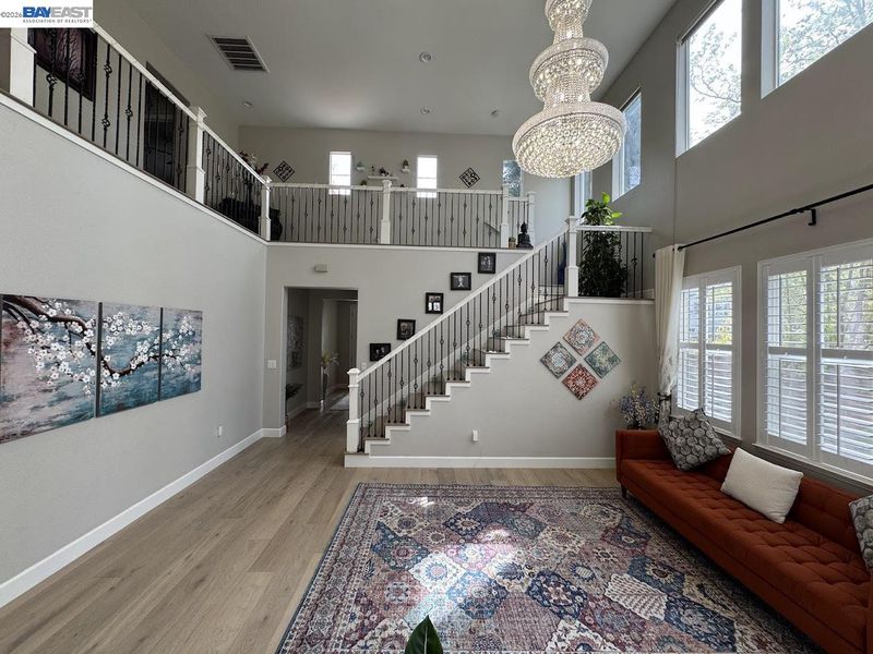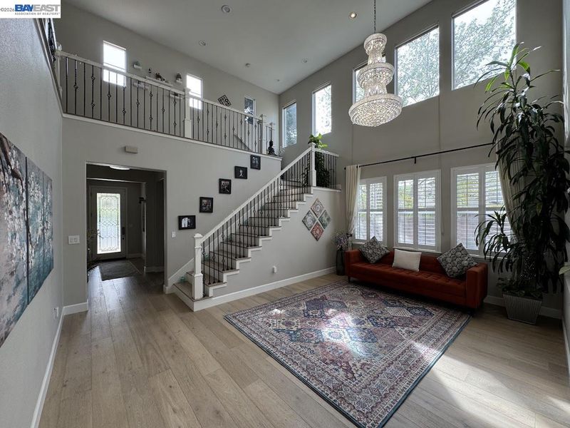 Experience the pinnacle of luxury living in this exquisite 2,962 sqft corner-lot home in the premier Windemere neighborhood! This 4-bed, 3-bath home, w/ ~240K in upgrades, shows like an upscale designer model. Tiled entry way w/ step lights lead to an inviting glass insert front door. Step into a sun-drenched floor plan defined by soaring high ceiling living room, showstopper chef’s kitchen w/ island - features exclusive Taj Mahal Quartzite countertop, custom soft-close cabinetry & SS appliances, separate family room anchored by breathtaking -floor-to-ceiling- marble paneled fireplace. Coveted main-level bedroom & full bath. Exquisite chandeliers, decorative wrought-iron balusters on the staircase, wide plank hard wood flooring & built-in wooden cabinetry throughout. Central AC. 8.2kWh owned solar system w/ dual backup batteries. Upstairs is a spa-inspired primary suite featuring dual vanities, a jetted soaking tub & an expansive walk-in closet w/ custom organization. 2 other generous sized bedrooms w/ custom closets. Enjoy your serene oasis w/ manicured lawns, landscaped yard w/ custom arbor for entertaining. 3-car garage w/ attractive epoxy flooring, EV charging & water softener. W/ just steps to top schools, parks & trail, this fabulous & turnkey abode is THE HOME for YOU!