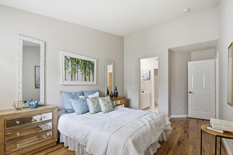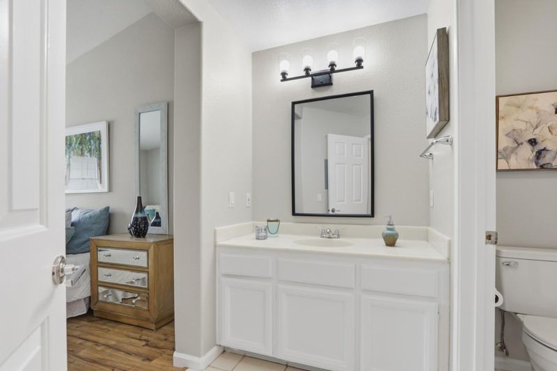 It is extremely rear to find a 3 bedrooms with 3 FULL bathrooms home, where one of the bedroom/ full baths is located on your main level! Gated entrance to private patio leads to full of light spacious home. Beautiful laminate flooring throughout, new modern lighting, brand new paint, wood shatters, gas stove, high ceilings, open floor plan is a Signature of this home! Beautiful fireplace, refinished cabinetry, stainless steel door's & cabinet's handles, brand new toilets & bathroom mirrors, washer/ dryer & more makes this home move in ready! The upstairs bedrooms offer large walk in closets vaulted ceilings, privacy. The primary bedroom offers a luxury feel with a ton of space & includes an extra room for an office/ retreat/ exercise/ hobbies or storage. The extra-large two-car garage offers a built-in storage space. Low HOA fee, greatly maintained, this North San Jose development offers lush landscaping, great amenities. Enjoy your pool, hot tub spa, basketball court, BBQ area, walking trails. Centrally located, this community is minutes away from 101, 880, H Mart, 99 Ranch Market, Sprouts Market, large shopping centers, restaurants, a golf course, EZ commute to major tech companies. Amazing home in a quiet, clean and friendly neighborhood is awaiting for you!