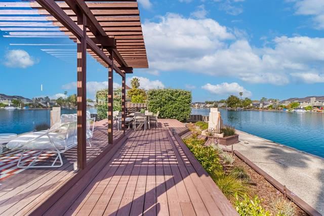Enjoy sweeping water views from this elegant home, just a short stroll to Sea Cloud Park. A bi-fold patio door creates a seamless flow between indoor and outdoor living, perfect for entertaining family and friends in the soaring living and dining rooms that feel almost perched on the water. The open layout connects the sunroom, deck, and interior spaces with ease, while durable hard floors run throughout. The gourmet kitchen features sleek cabinetry, stainless steel appliances, a center island, and a sunny breakfast nook. Upstairs, all bedrooms are conveniently located on the same level. The spacious primary suite offers two walk-in closets, ample room for a desk or sitting area, modern window treatments, and a luxurious ensuite bath with dual vanities and a large walk-in shower. A rare highlight: a deep-water dock that can accommodate a large boatideal for kayaking or boating to the nearby shopping center with its market, banks, and restaurants. Tucked away on the highly desirable west side, youll enjoy a quieter location away from the flight path. With top elementary and middle schools nearby, this is a rare opportunitystop searching and start your waterfront lifestyle today!