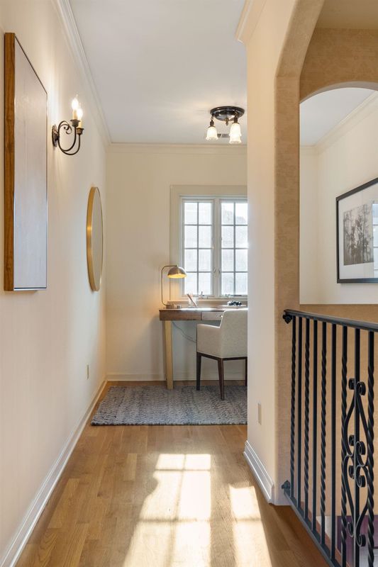 Set on a beloved Upper Rockridge street, 4800 Proctor carries a sense of continuity and care rarely found. Held in the same family since before its thoughtful 1994 rebuild, this classic Tudor has been a place of gathering, light, and everyday joy for decades. Enter to high ceilings, abundant natural light, and timeless Tudor details for a welcoming first impression. The spacious living room is a true showpiece—hardwood flooring, a beautiful fireplace, and picture windows that frame the outdoors light up this welcoming space. The eat-in kitchen opens seamlessly to a generous deck overlooking the rear yard, an ideal setting for morning coffee or dining alfresco. The adjacent dining room looks out to the front porch and captures peaceful bay views, making everyday meals feel just a little more special. A lovely bedroom and full bath complete the main level. Upstairs, two light-filled bedroom suites provide private retreats, each with its own full bathroom. An office nook is great for those that work from home.