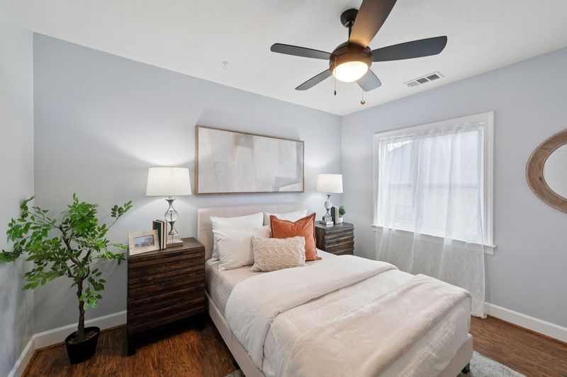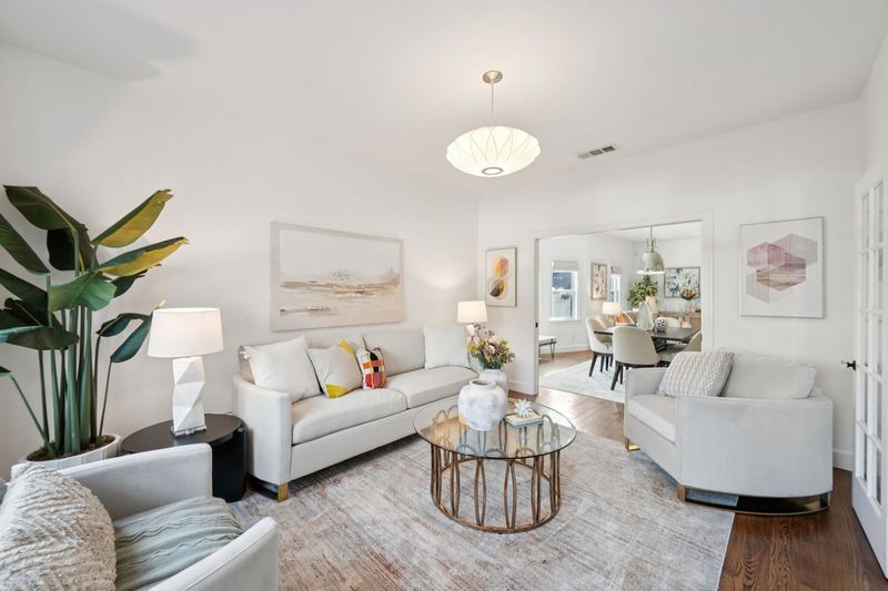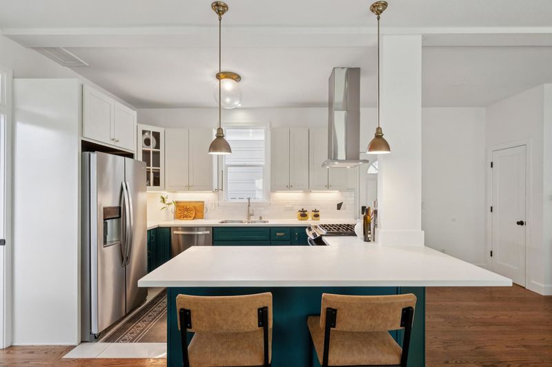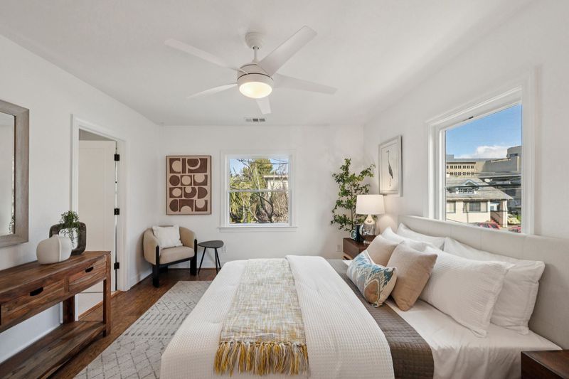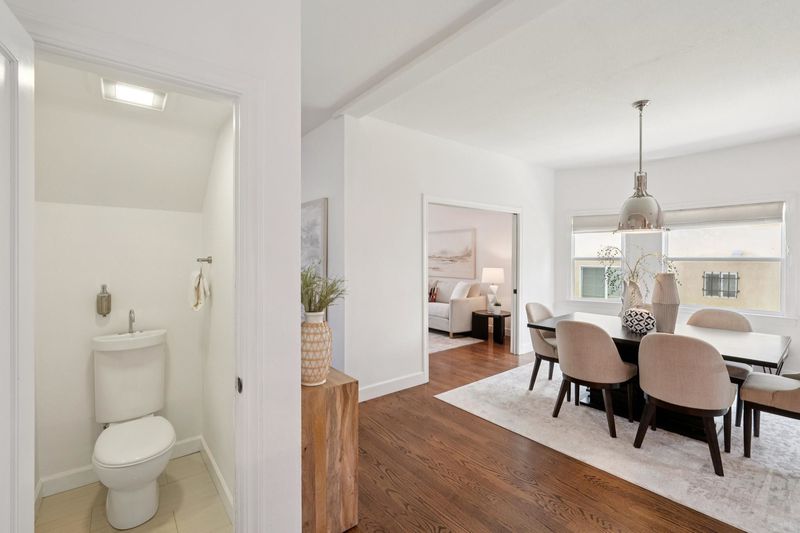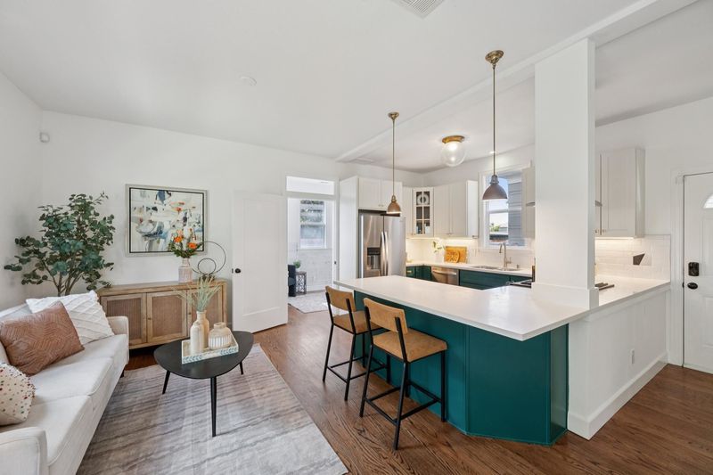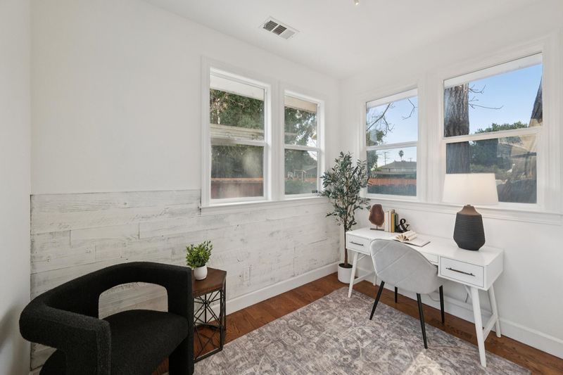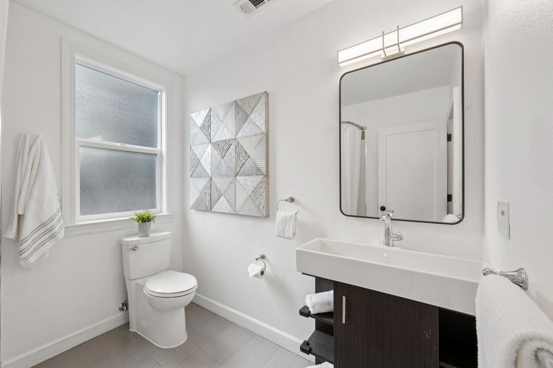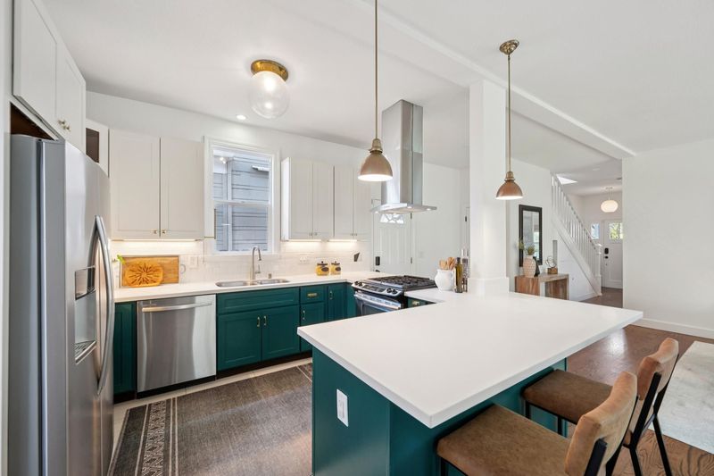 Move-in ready home with modern design and timeless style. Chef’s kitchen includes a gas range and hood, stainless steel dishwasher, and quartz countertops. The half bath has a convenient space-saving sink. Easy access to the back parking spot from the side door. Primary suite, two bedrooms, a full bathroom, stackable washer/dryer, and a spacious bonus space*, parking space behind the house, and a storage shed. Fully owned Tesla solar system, dual-pane windows, sewer lateral, and sidewalk compliant — it’s ready to move right in!