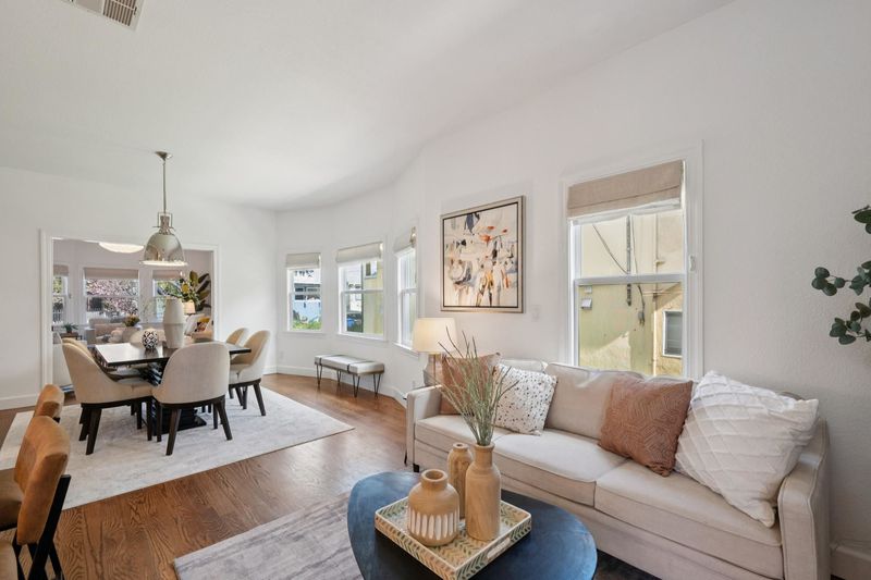 Move-in ready home with modern design and timeless style. Gather in the welcoming living room and enjoy the easeful flow into the open concept dining area. Chef’s kitchen includes a gas range and hood, stainless steel dishwasher, and quartz countertops. The half bath has a convenient space-saving sink. Easy access to the back parking spot from the side door. The upstairs has a generous primary suite, two bedrooms, a full bathroom, and a stackable washer/dryer. Play in the treehouse or enjoy sitting among the trees and flowers in the front yard. So many possibilities with a sun-filled, spacious bonus space*, parking space behind the house, and a storage shed. Perfect to work from home, cook, and entertain. Fully owned Tesla solar system, dual-pane windows, sewer lateral, and sidewalk compliant — it’s ready to move right in. Central to 580, 24, 80, Children’s Hospital, as well as a plethora of shops and cafés. *Buyer to verify.
