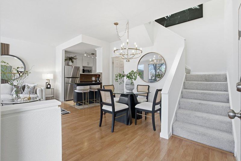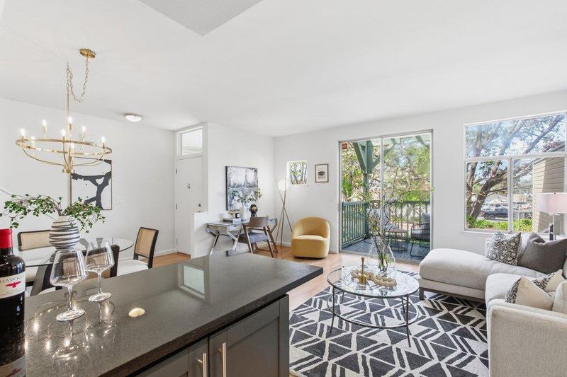 Well-designed 2-bedroom, 1-bath condo offers 983 sq ft of functional living space in a centrally located San Mateo community. The main level features a bright living & dining area w/double-pane windows and a sliding glass door with direct access to a spacious balcony, perfect for morning coffee or outdoor dining. Abundant natural light fills the home, with a skylight above the staircase enhancing the bright, airy feel throughout. The kitchen overlooks the main living space and offers generous storage, granite countertops, a stainless-steel appliance suite with gas range, breakfast bar seating, and two-tone cabinetry. Upstairs, both bedrooms are well-sized w/ample closet space & is located near a remodeled bathroom with shower-over-tub combo. Additional highlights include freshly painted interior, laminate flooring on the main level, a full-size in-unit washer|dryer, radiant heating, a 1-car garage. Conveniently located near Caltrain, major commuter routes including 101 and 280, Hillsdale Shopping Center, and a variety of shopping and dining options, all within a community setting featuring landscaped grounds and a neighborhood park. A compelling opportunity for first-time buyers, downsizers, or investors looking for value in a high-demand San Mateo location.