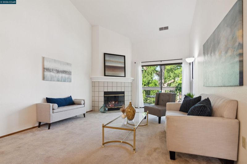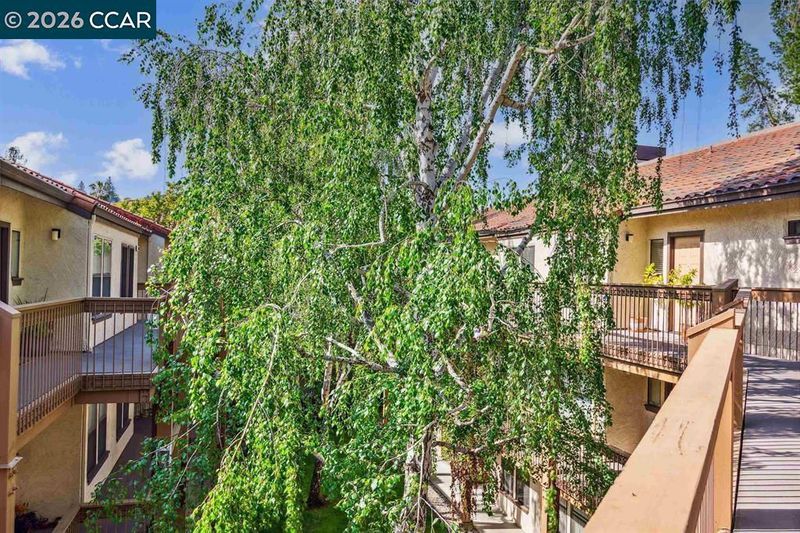 Location, Location, Location! This unit boasts one of the best locations in the entire community. Backing up to the creek & trail, the unit is surrounded by birdsong, trees & sky offering serenity & privacy that is unmatched. This charming upper-level condo is nestled in the popular Villas Community in Walnut Creek offering a bright & open floor plan & comes w/ new laminate flooring, freshly painted interior, updated bathroom, wood burning, fireplace, in unit washer & dryer & a private shady patio. As you enter the home you will be delighted w/ the vaulted ceilings & how the entire space is filled w/ abundant natural light. The kitchen offers new lighting, a versatile breakfast bar w/ generous counter space & cabinets & includes built-in microwave, refrigerator, oven, stove & dishwasher making cooking & entertaining a delight. Open kitchen overlooks the bright & cheery dining room w/ modern chandelier & into the spacious living room w/ vaulted ceilings & tiled fireplace giving the room a warm & inviting feeling. Sliding glass doors lead out to the private patio radiating a tree house style setting of nature & birdsong. Bedroom is airy & bright w/ windows on 2 sides of this rare corner unit offering multiple views & plenty of space. The full bathroom includes new vanity & lights.