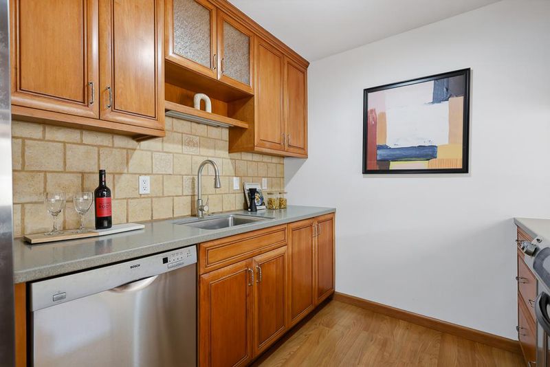 - 220 Volt Outlet, Countertop - Solid Surface / Corian, Dishwasher, Garbage Disposal, Hood Over Range, Oven Range - Electric, Warming Drawer, Refrigerator