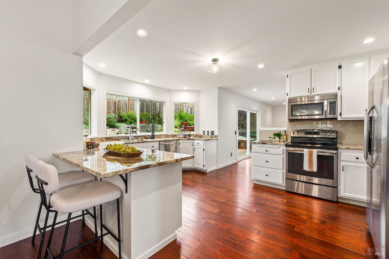 Welcome to this inviting 4-bedroom home in the sought-after Wikiup community. Offering a classic and versatile floor plan, the home features a full bedroom and bath on the main level, a spacious living/dining room combination, and an updated kitchen that opens to a comfortable family room - ideal for everyday living and effortless entertaining. Thoughtful improvements include dual-pane windows, hardwood floors, refreshed lighting, and new interior paint. The kitchen and bathrooms have been tastefully remodeled, and recent system upgrades including a new furnace and water heater (2025) ensure this home is truly move-in ready. Step outside to a private backyard that backs to peaceful open space, designed for relaxation and enjoyment, complete with a flagstone patio for outdoor dining, a relaxing hot tub, and room for gardening. Ideally located just 10 minutes to the Charles M. Schulz Airport, 5 minutes to Highway 101, 15 minutes to Downtown Healdsburg, and 1 mile to Shiloh Regional Park, this home offers the perfect blend of comfort, convenience, and Wine Country lifestyle.