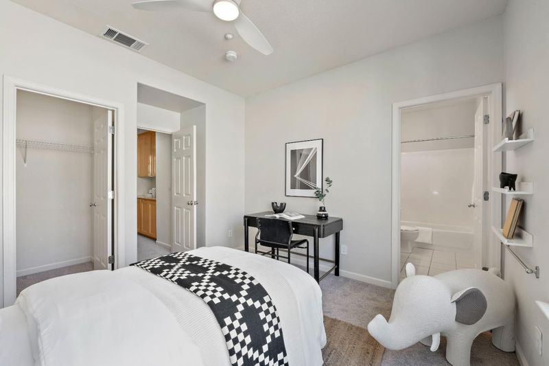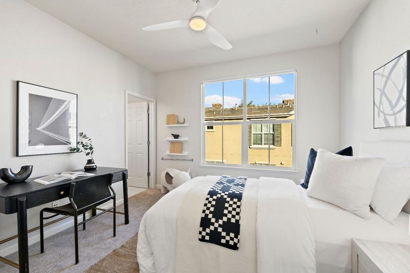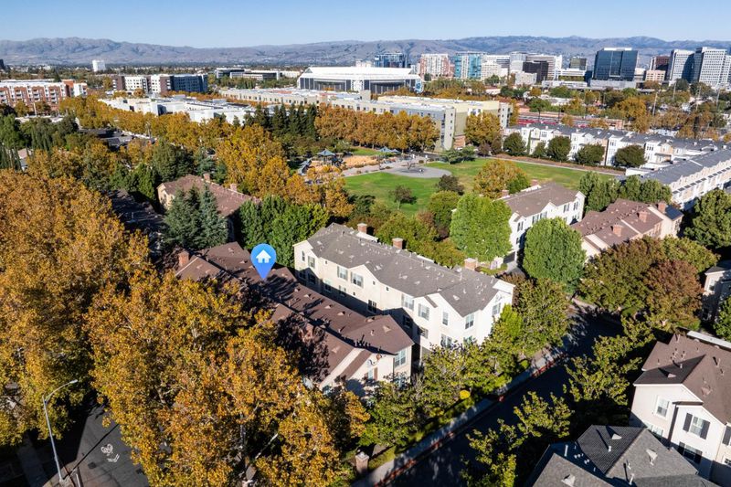 This is the one you've been waiting for. Its downtown San Jose living at its finest. Enjoy proximity to every amenity imaginable Caltrain and Light Rail, San Jose Airport, Whole Foods, Safeway, Sprouts, Target, Trader Joes, Valley Fair, Santana Row, and even a beautiful 3+ acre park right next to the property. Step inside this wonderful townhouse-style home and into a light-filled living room featuring a fireplace and custom wall paneling that adds warmth and character. The upgraded kitchen includes stainless steel appliances, stone countertops, and it opens to a spacious dining area that could easily double as an office or second family room. A bedroom with a walk-in closet and full bath is conveniently located on the kitchen level. Upstairs, youll find a large primary suite with high ceilings, abundant natural light, a luxurious bathroom with separate shower and deep soaking tub, dual sinks, and a generous walk-in closet. The additional upstairs bedroom also offers its own private full bath. Other highlights include a dedicated laundry room with ample storage, an oversized two-car attached garage, central AC, hardwood floors, high-end carpet, elegant tile, and light, bright paint throughout. This home blends comfort, elegance, and convenience. This one won't last!