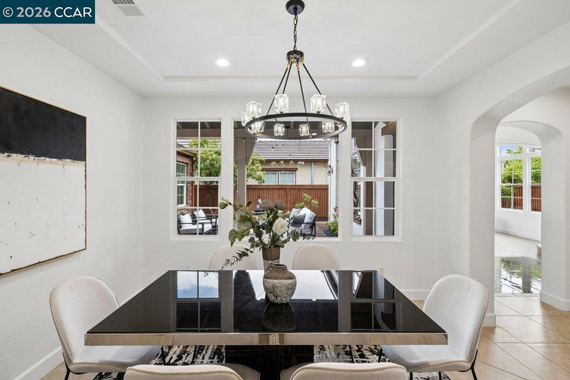 Discover Shapell’s signature craftsmanship in this exceptional “Magnolia” residence, ideally located in the prestigious Alamo Creek community. Built in 2006, this stunning Modern Craftsman style home offers approximately 3,431 square feet of thoughtfully designed living space, blending timeless elegance with modern comfort. Featuring 5 spacious bedrooms and 4.5 bathrooms, the home includes formal living and dining rooms, along with an expansive open concept kitchen, family room, and sunlit breakfast nook, perfect for both everyday living and entertaining. A standout feature is the private apartment style casita with a full bathroom, centered around a charming courtyard, ideal for guests, multigenerational living, or a private office. Situated on a premium 6,707 square foot lot with no rear neighbors, the property offers beautiful sunset views and enhanced privacy. The professionally landscaped grounds feature a tiered slate entry, inviting courtyard with café lighting, and lush gardens with fruit trees and manicured hedges. Additional highlights include a 3 car tandem garage, owned solar system, and Tesla charging station. Welcome home to Alamo Creek, where every detail inspires.