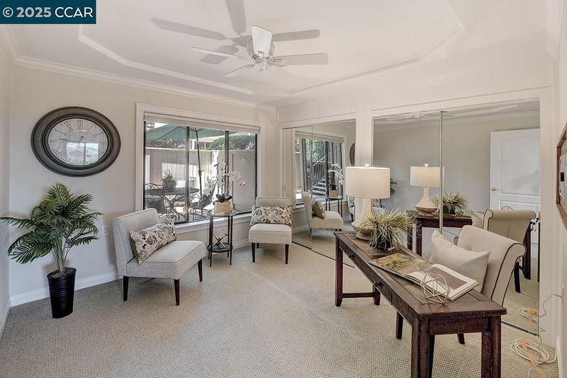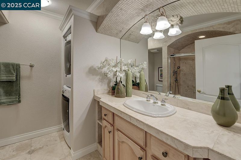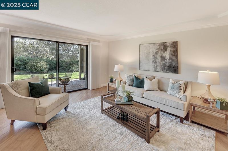 Beautifully remodeled Carmel model by Toupin, showcasing a stunning panoramic view of Mt. Diablo, welcoming Green Belt and the surrounding hills. This home has been thoughtfully updated from top to bottom, featuring elegant cabinetry, laminate flooring, and a gorgeous tile shower. Enjoy dramatic detailing throughout, including crown molding, smooth ceilings, and new adjustable-color LED recessed lighting in the kitchen. Convenient in-unit full-size washer and dryer. Nestled in the highly desirable Green Bell area of Rossmoor, this exceptional home combines modern comfort with breathtaking scenery, the perfect blend of style and serenity in this vibrant 55+ community.This is your new home in Rossmoor!