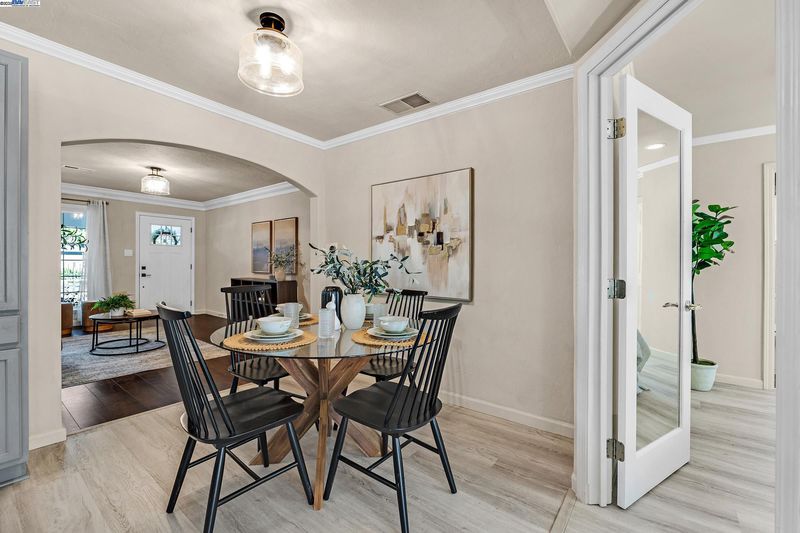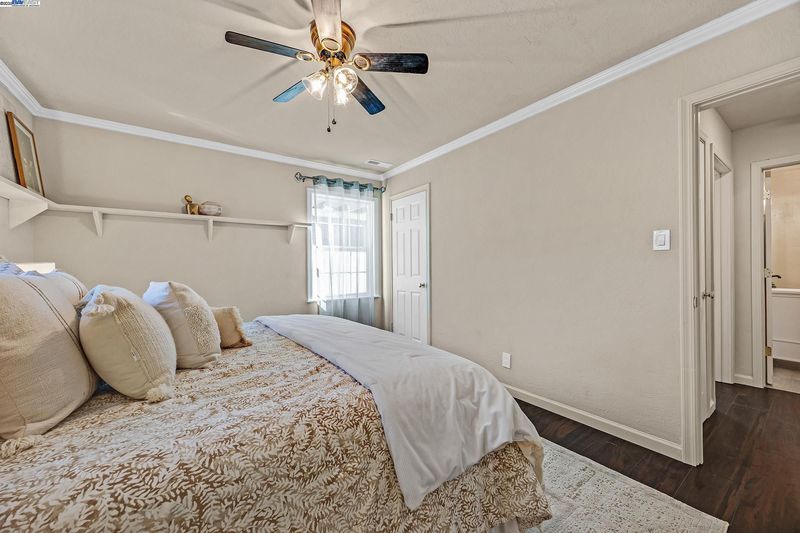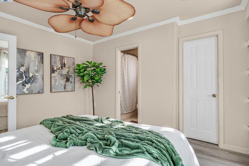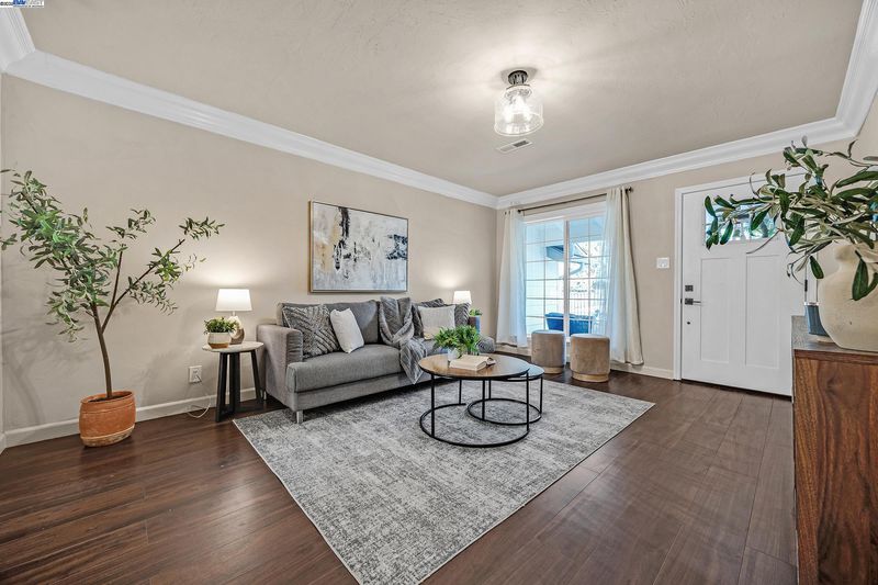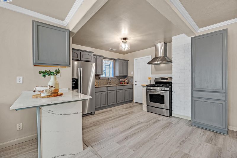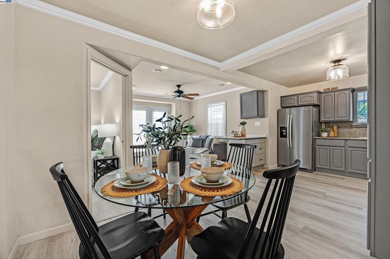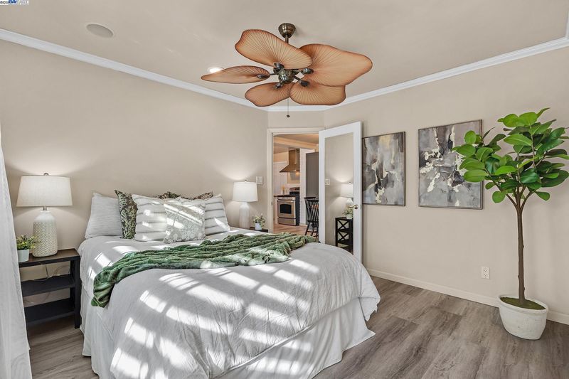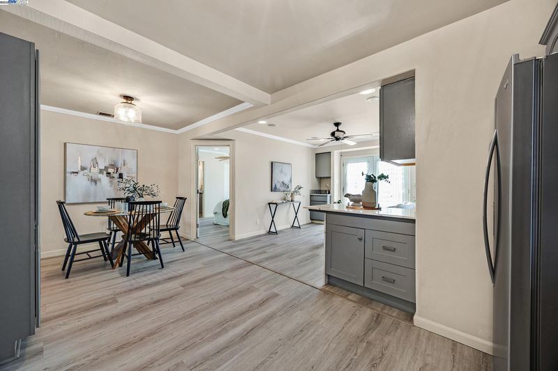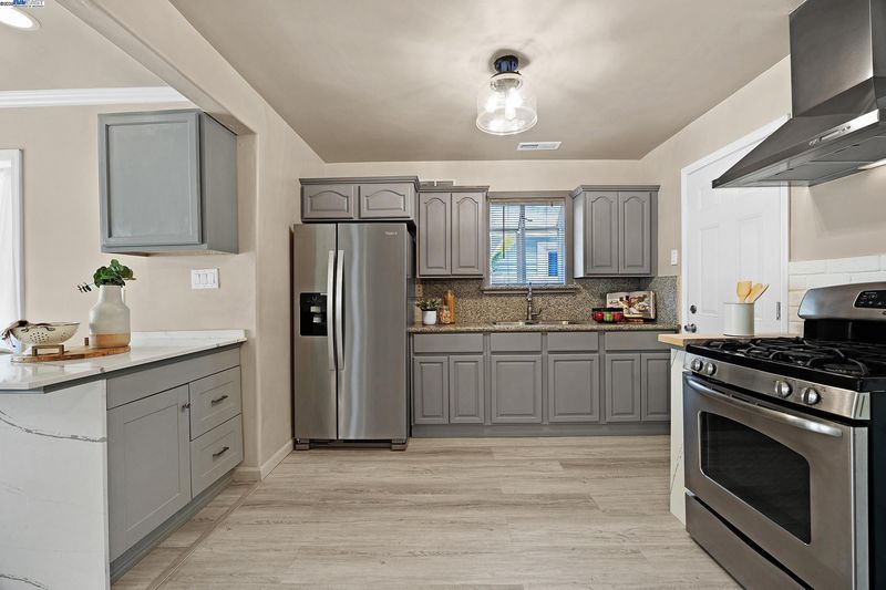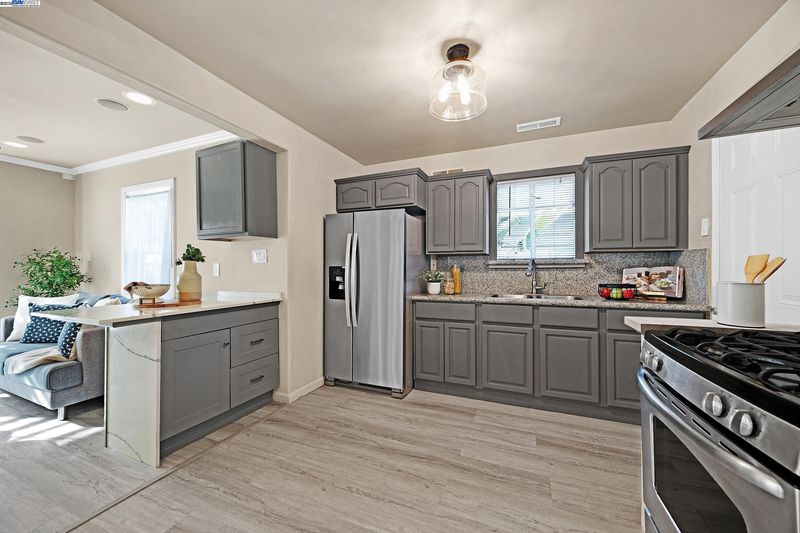 Welcome to this beautifully updated 3-bedroom, 2-bath residence that perfectly blends comfort, style, and functionality. Ideally located within walking distance to downtown and offering quick access to Hwy 580, this home provides easy living in the heart of the city. The open floor plan is filled with natural light, creating a warm and inviting atmosphere throughout. The kitchen showcases granite countertops, freshly painted cabinets, and a lovely bay window overlooking the yard. The adjoining living room features recessed lighting, ceiling speakers, a ceiling fan, and a wet bar—making it a great space for entertaining or relaxing at home.The primary suite offers a peaceful retreat with double sinks, granite counters, and a luxurious jetted Roman tub. Thoughtful upgrades include updated plumbing, new roof and gutters, modern light fixtures, durable flooring, and a fully permitted living area expansion. Step outside to a spacious covered patio ideal for gatherings, and enjoy the low-maintenance backyard with potential for an ADU. The gated driveway offers parking for multiple vehicles, plus an attached garage and electric security gate for added convenience and privacy. This delightful home combines modern updates, quality craftsmanship, and an unbeatable location.