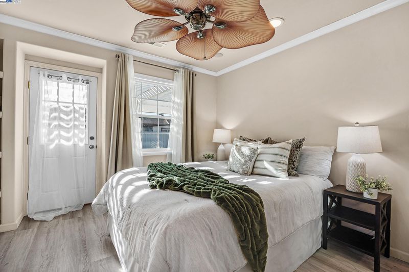 Welcome to this beautifully updated 3-bedroom, 2-bath residence that perfectly blends comfort, style, and functionality. Ideally located within walking distance to downtown and offering quick access to Hwy 580, this home provides easy living in the heart of the city. The open floor plan is filled with natural light, creating a warm and inviting atmosphere throughout. The kitchen showcases granite countertops, freshly painted cabinets, and a lovely bay window overlooking the yard. The adjoining living room features recessed lighting, ceiling speakers, a ceiling fan, and a wet bar—making it a great space for entertaining or relaxing at home.The primary suite offers a peaceful retreat with double sinks, granite counters, and a luxurious jetted Roman tub. Thoughtful upgrades include updated plumbing, new roof and gutters, modern light fixtures, durable flooring, and a fully permitted living area expansion. Step outside to a spacious covered patio ideal for gatherings, and enjoy the low-maintenance backyard.
