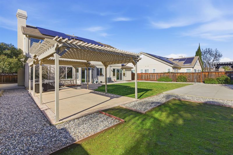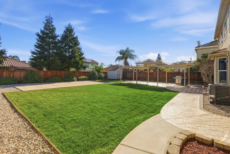 This beautiful Brentwood home offers owned solar, ADU potential, and access to great community amenities, including a community pool just a short walk away. The large junior primary suite downstairs is perfect for in-laws, guests, or multi-generational living and can easily be converted into an ADU for added income. The massive backyard features a pergola overhang, a storage shed, and a large grass area for family pets or kids to play. There is also plenty of space for a possible sports court. Inside, enjoy a bright, open floor plan with tasteful upgrades throughout. The large kitchen includes granite countertops, an island, a coffee bar, workspace, freshly painted cabinets, and built-in appliances. Large storage area under stairs. This home delivers comfort, efficiency, and flexibility all in one place. Welcome home!!