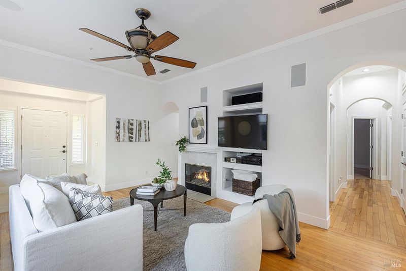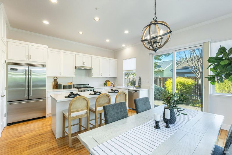 Nestled on a corner lot, sits this lovely north Napa single level 3 bedroom, 2 bath, beautifully built O'Brien home. The floor-plan is well appointed and offers an open room concept from the entry to the family room to the kitchen and dining area. Tall ceilings throughout makes the home appear larger and invites in natural light. Hardwood floors are in most of the rooms including the front family room with the gas insert fireplace. The spacious, remodeled kitchen features newer cabinets, a stainless Viking range and Viking refrigerator, newer Quartz countertops, eat-in island, and a custom built-in cabinet for more storage which features a pretty wood countertop. One bedroom is near the front of the home while the primary is at the back of the home with views of the backyard garden. The primary bath has a tiled shower stall, two vanity sinks with a quartz countertop, tile floor and a walk-in closet. The laundry room is inside near the two car attached garage (washer/dryer convey). The backyard has mature trees and gardens with a generous wrap around yard that provides privacy for the hot tub and ample room for the back patio where you can dine al fresco with guests. Excellent location close to shopping, restaurants, schools, wineries and Queen of the Valley Medical Center.