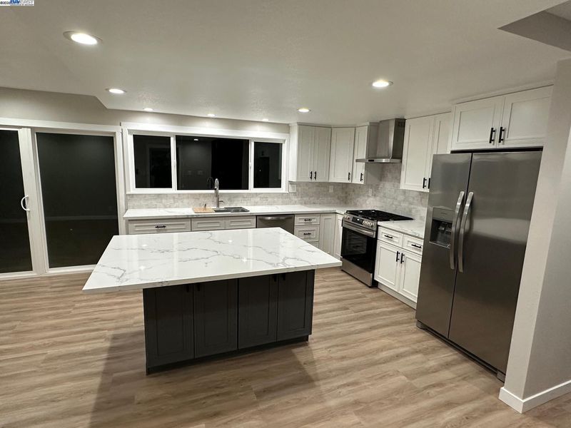 - Dishwasher, Gas Range, Plumbed For Ice Maker, Free-Standing Range, Refrigerator, Gas Water Heater, Stone Counters, Eat-in Kitchen, Disposal, Gas Range/Cooktop, Ice Maker Hookup, Kitchen Island, Range/Oven Free Standing, Updated Kitchen