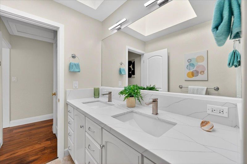 Double Sinks, Primary - Stall Shower(s), Shower over Tub - 1, Skylight, Updated Bath
