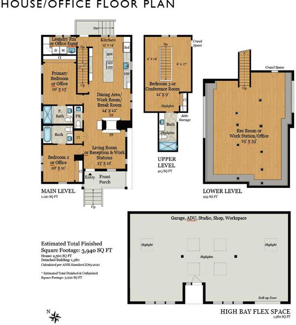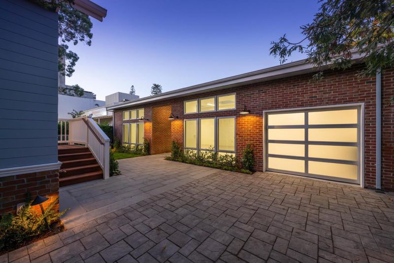 Two recently updated buildings in downtown Palo Alto zoned CD-N, which allows a multiplicity of uses: residential, office, retail, personal services [e.g., fitness center], and more or a mix of uses // Front house [2560 sf] has 3 bedrooms [or offices] and an open lower level [955 sf] that can accommodate a variety of personal or commercial uses // Rear building [1380 sf] is a brick clad high bay clear space with skylights, a wall of glass, and a glass roll up door: an open canvas for your creativity // Inviting landscape embraces the buildings // Walk to downtown amenities // Refer to SB 79 for high density redevelopment potential //