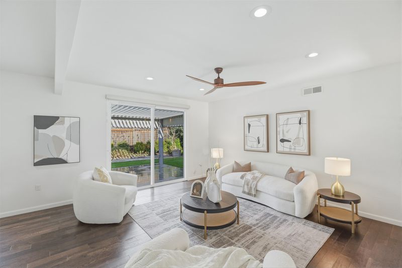 This beautifully upgraded single-story home is truly move-in ready and offers a rare combination of style, comfort, and smart functionality. Designed with modern living in mind, the home features a Smart Home System and a designer kitchen complete with stainless steel appliances, granite countertops, and a glass tile backsplash. The open-concept dining and family rooms create a bright and inviting space, highlighted by stunning hardwood flooring throughout the home. Both bathrooms have been tastefully remodeled, with the primary suite featuring a stylish barn door, dual sinks with quartz countertops, and an enlarged walk-in shower. Major upgrades begin with paid-off solar with battery storage for off-grid living, providing energy efficiency and peace of mind. The home also features copper piping, new kitchen appliances including a refrigerator and dishwasher, new recessed lighting, ceiling fans, central air conditioning, and a new roof. The backyard showcases a top-of-the-line retractable louvered patio, perfect for year-round entertaining, along with RV or boat parking for added convenience. Ideally located with quick access to Highways 680, 880, and 237, this home provides an easy commute to major employers including Tesla and Facebook. Enjoy close proximity to Pacific Common