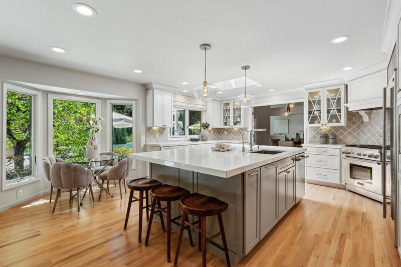 - Cooktop - Gas, Countertop - Quartz, Dishwasher, Exhaust Fan, Garbage Disposal, Hood Over Range, Island with Sink, Oven - Built-In, Refrigerator, Skylight