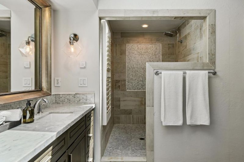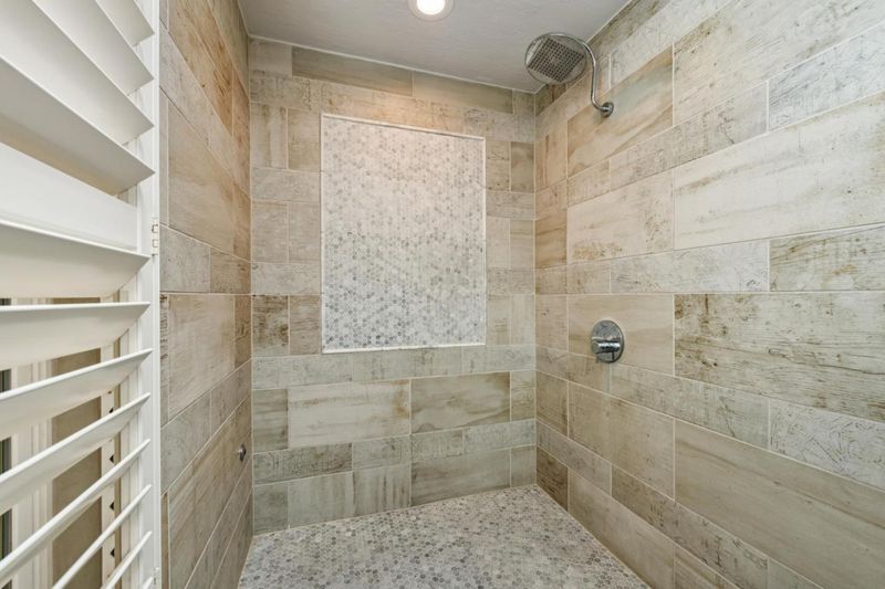 - Double Sinks, Primary - Stall Shower(s), Shower and Tub, Shower over Tub - 1, Skylight, Stall Shower - 2+, Tile, Tub in Primary Bedroom, Tubs - 2+, Updated Bath