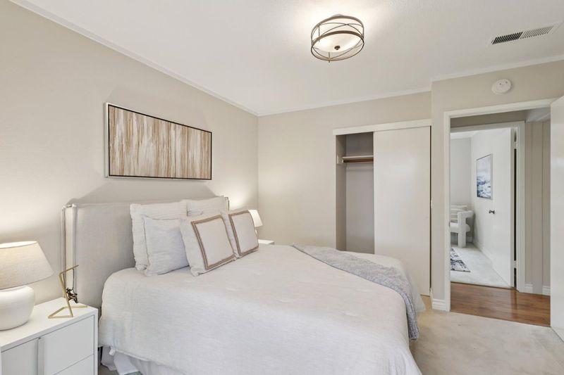 Nestled in a peaceful tree-lined neighborhood in the heart of Mountain View, this stunning 3-bedroom, 1.5-bath PUD townhome offers a perfect blend of modern comfort and prime location. The main level features an open light-filled floor plan ideal for both everyday living and entertaining. A spacious living area opens to a private backyard, and the seamless flow into the contemporary kitchen creates an inviting gathering space. The kitchen is beautifully appointed with high-end appliances, quartz countertops, and ample cabinetry, making it a true chef's delight. Upstairs, the three generous bedrooms feature bright nature light and offer versatile space for family, guests, or a home office. A convenient half bath on the main level adds to the home's thoughtful layout. Distinctive upgrades include fresh interior paint, central heating and air conditioning, nest thermostat, modern recessed lighting, newly designed mirrors and much more. Just minutes from vibrant downtown Mountain View, with easy access to shopping, dining, parks, hiking trails, and top-rated schools. With quick connections to Highways 101 and 85, commuting to major tech campuses such as Google and Meta is effortless. This exceptional townhome combines comfort, convenience, and an unbeatable Silicon Valley lifestyle!