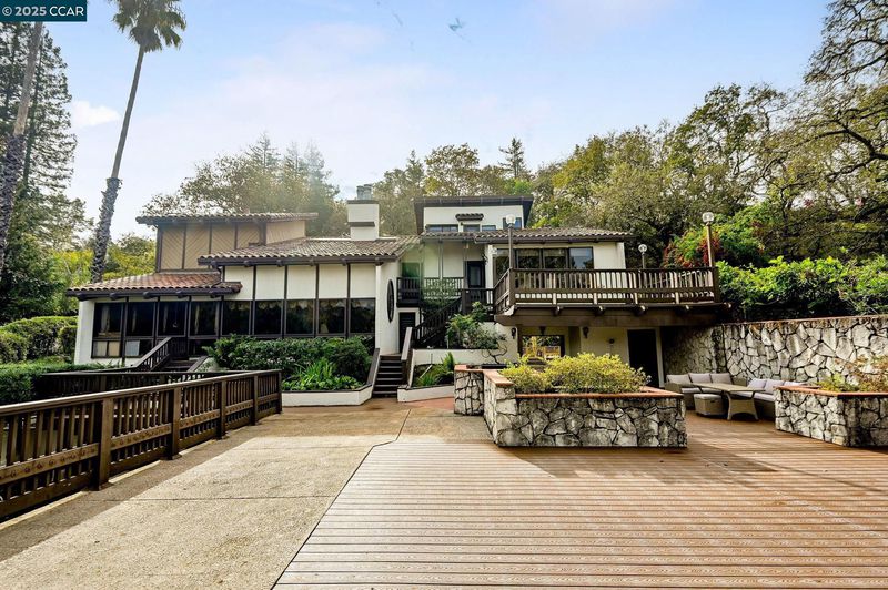 A distinctive architectural gem just minutes from downtown Lafayette, this elegant home boasts a unique and stylish design. Beautifully preserved original details, exposed beams, warm wood accents, dramatic soaring ceilings, and an open floor plan create a sense of space and light throughout. The home exudes authentic charm, with solid construction and generous spaces. Encompassing approximately 4,093 square feet with five bedrooms and three full baths, two inviting living rooms—both with fireplaces, one highlighted by a remarkable stained-glass window—as well as a library, an office, and ideal spaces for both relaxation and entertaining. Walls of glass highlight serene views and create seamless indoor-outdoor flow, leading to a spacious deck perfect for gatherings. An expansive sport court offers endless possibilities for recreation, while a three-car garage with an upstairs bonus room and abundant storage adds convenience. Surrounded by nature on a .53-acre lot, with space for a potential ADU, this tranquil sanctuary is an entertainer’s dream—combining privacy, character, and style. Conveniently close to BART and the beautiful Lafayette Reservoir.