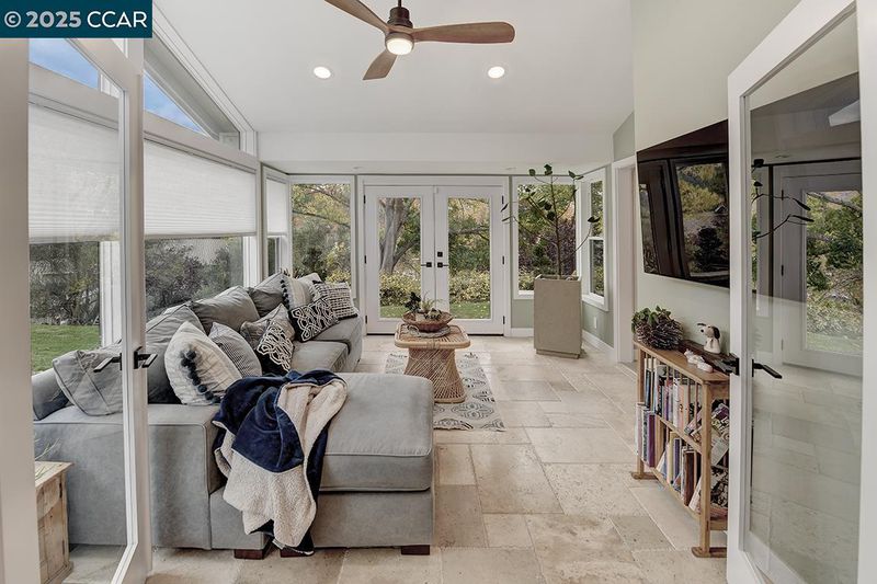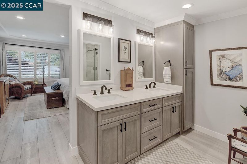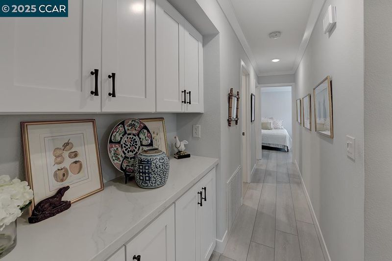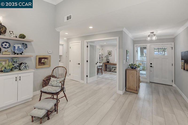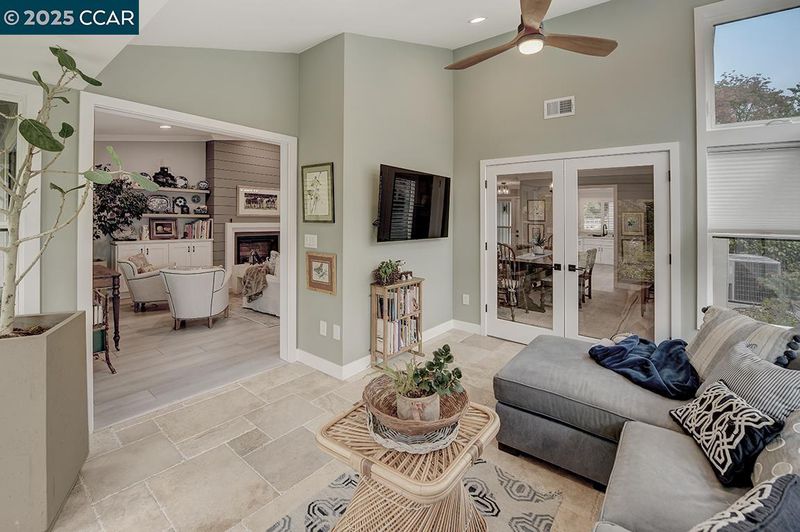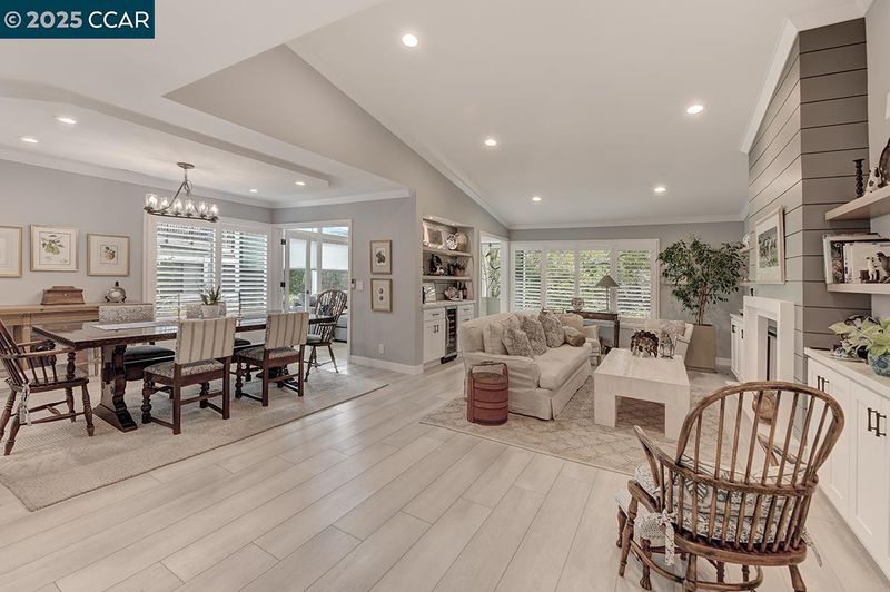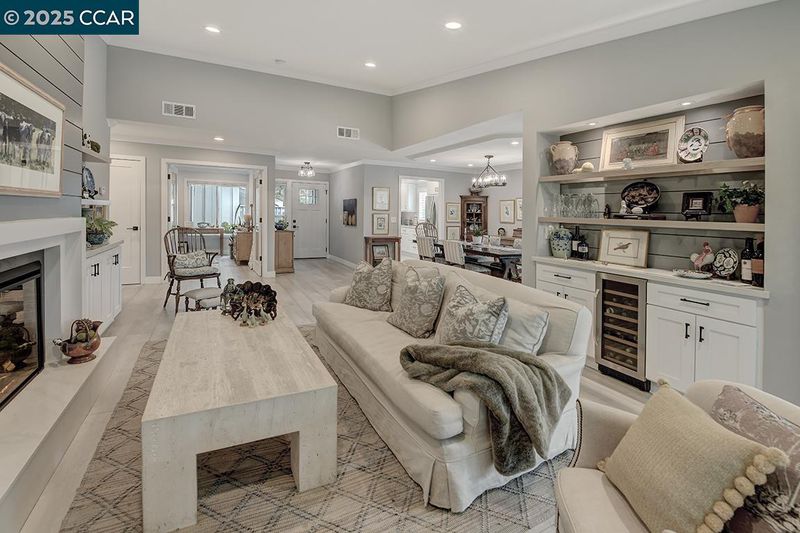 Experience refined living in this stunning 2021 Tahoe remodel by The Gallo Group, showcasing exceptional craftsmanship and attention to detail. This one-of-a-kind Rossmoor residence blends modern comfort with timeless sophistication, offering a serene and functional lifestyle. With 3 gentle steps to the front door, enter into a beautifully reconfigured open-concept layout featuring a private enclosed sitting area with French doors opening to a tranquil outdoor retreat. The gourmet kitchen impresses with custom cabinetry, generous pantry storage, sleek quartz counters, and stainless-steel appliances. The spacious living area features an elegant electric fireplace, custom built-ins, and a designer bar with a wine refrigerator—perfect for entertaining or unwinding. Updated bathrooms boast stylish tile work, modern vanities, and premium fixtures, while a dedicated laundry room offers convenience. Luxury vinyl plank flooring, recessed lighting, and designer finishes throughout create a cohesive, contemporary aesthetic—delivering a perfect blend of comfort, design, and lasting beauty